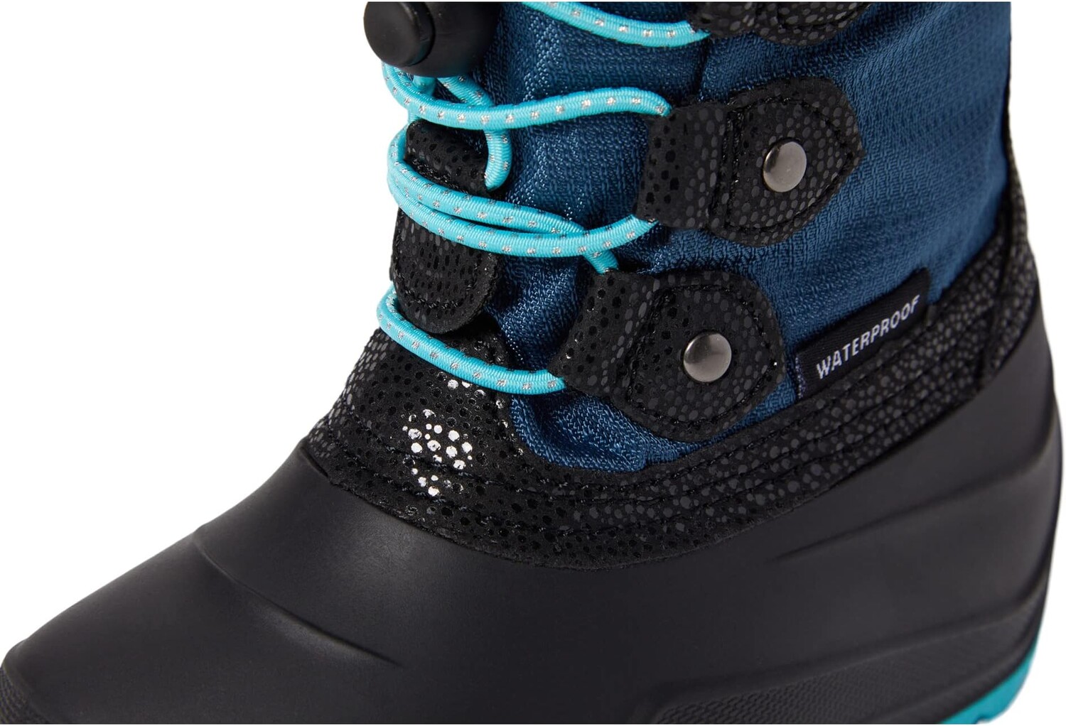 Верх из водонепроницаемого жаккардового нейлона и синтетической кожи, снежные воротники из искусственного меха и язычки со складками.