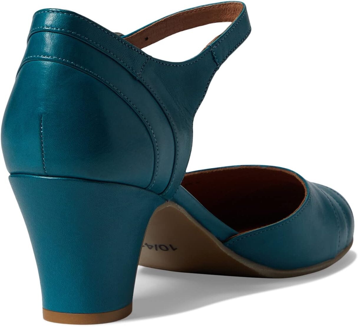 Покрытый каблук с регулируемым ремешком на щиколотке и застежка с пряжкой.