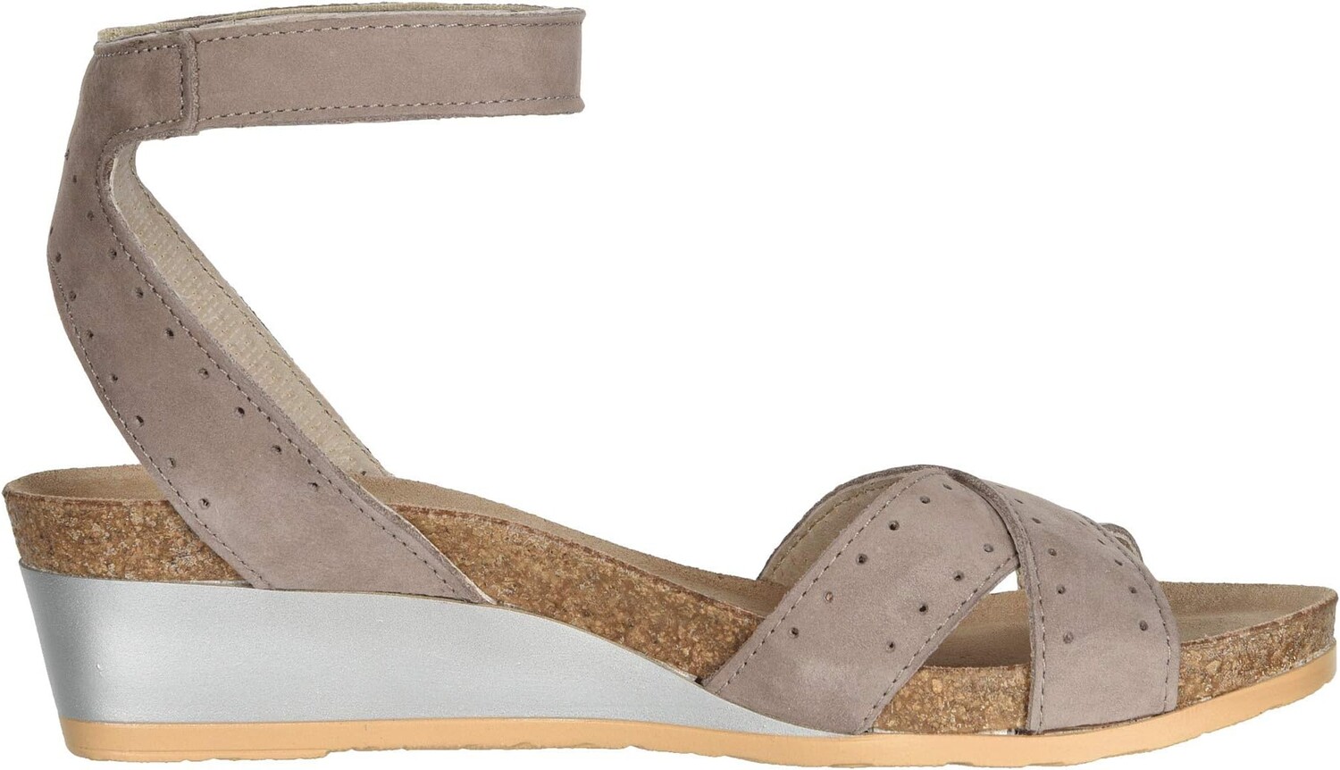 Мягкая, покрытая замшей анатомическая стелька из пробки и латекса повторяет форму стопы.