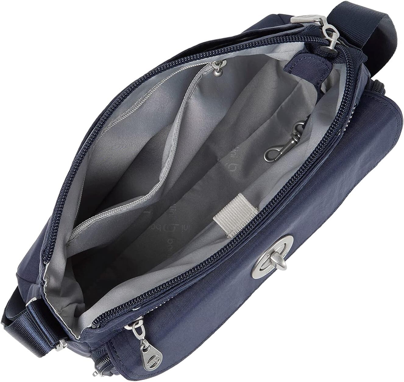 Сумка через плечо Baggallini Calais придаст вашему повседневному образу функциональность и шикарный стиль благодаря водостойкой ткани с принтом, плоскому регулируемому ремню через плечо и множеству организационных карманов.