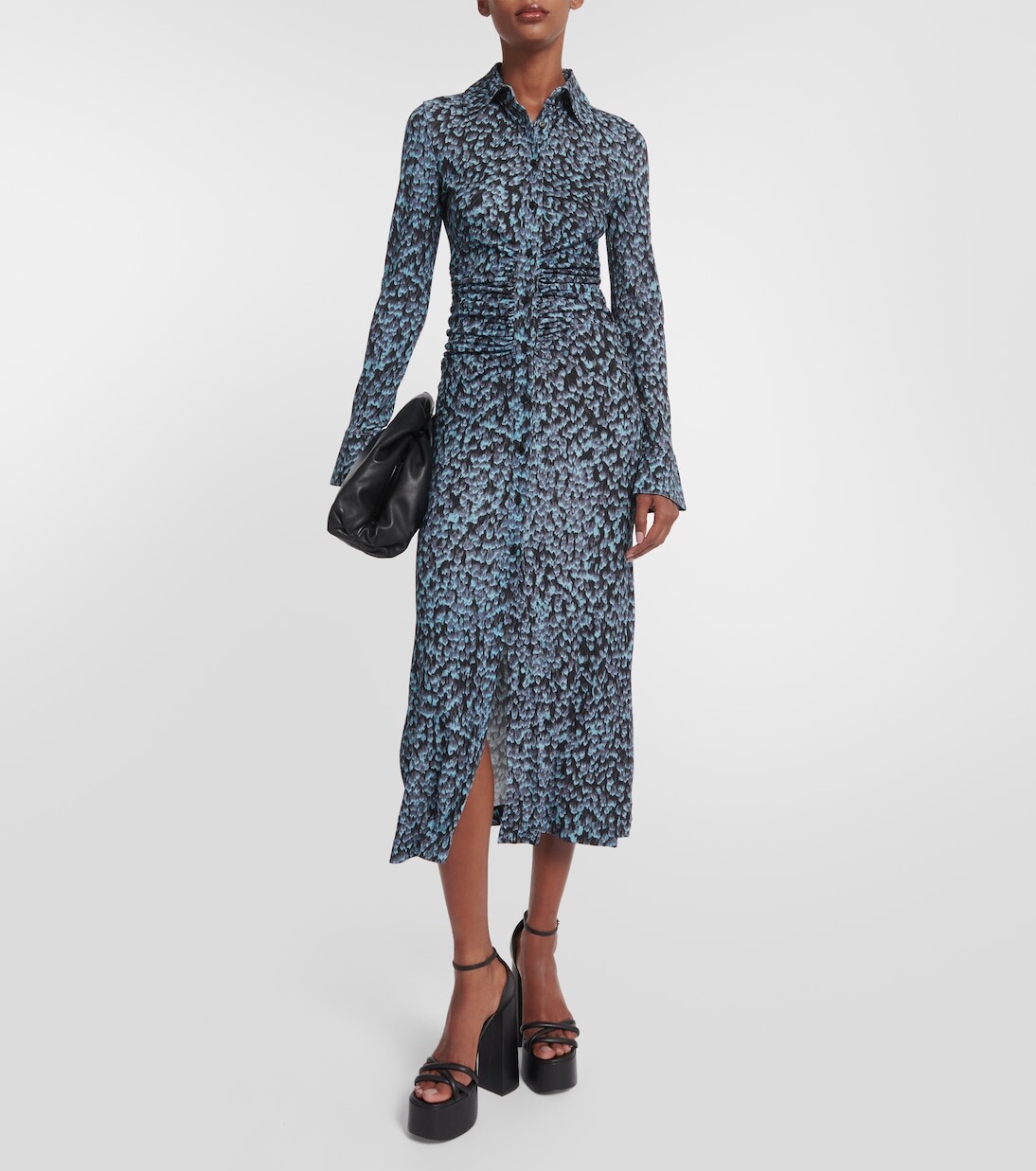 Платье-рубашка Claudia от Altuzarra выполнено из эластичной ткани облегающего силуэта и со рюшами на бедрах. Модель с принтом имеет максимальную длину с разрезами по бокам. Материал: 100% вискоза. Застежка: на пуговицах спереди. Рекомендации по уходу: сухая чистка. Сделано в Португалии.