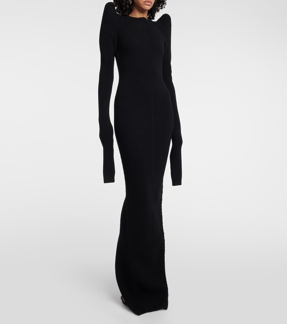 Ощутите авангардную эстетику Рика Оуэнса в этом эффектном платье. Мастерски выполненный из эластичной смеси кашемира и шерсти, силуэт со вставками подчеркивается эффектными рельефными плечами и удлиненными рукавами со сборками. Состав: 97% кашемир, 2% шерсть, 1% эластан. Рекомендации по уходу: сухая чистка. Сделано в Италии.