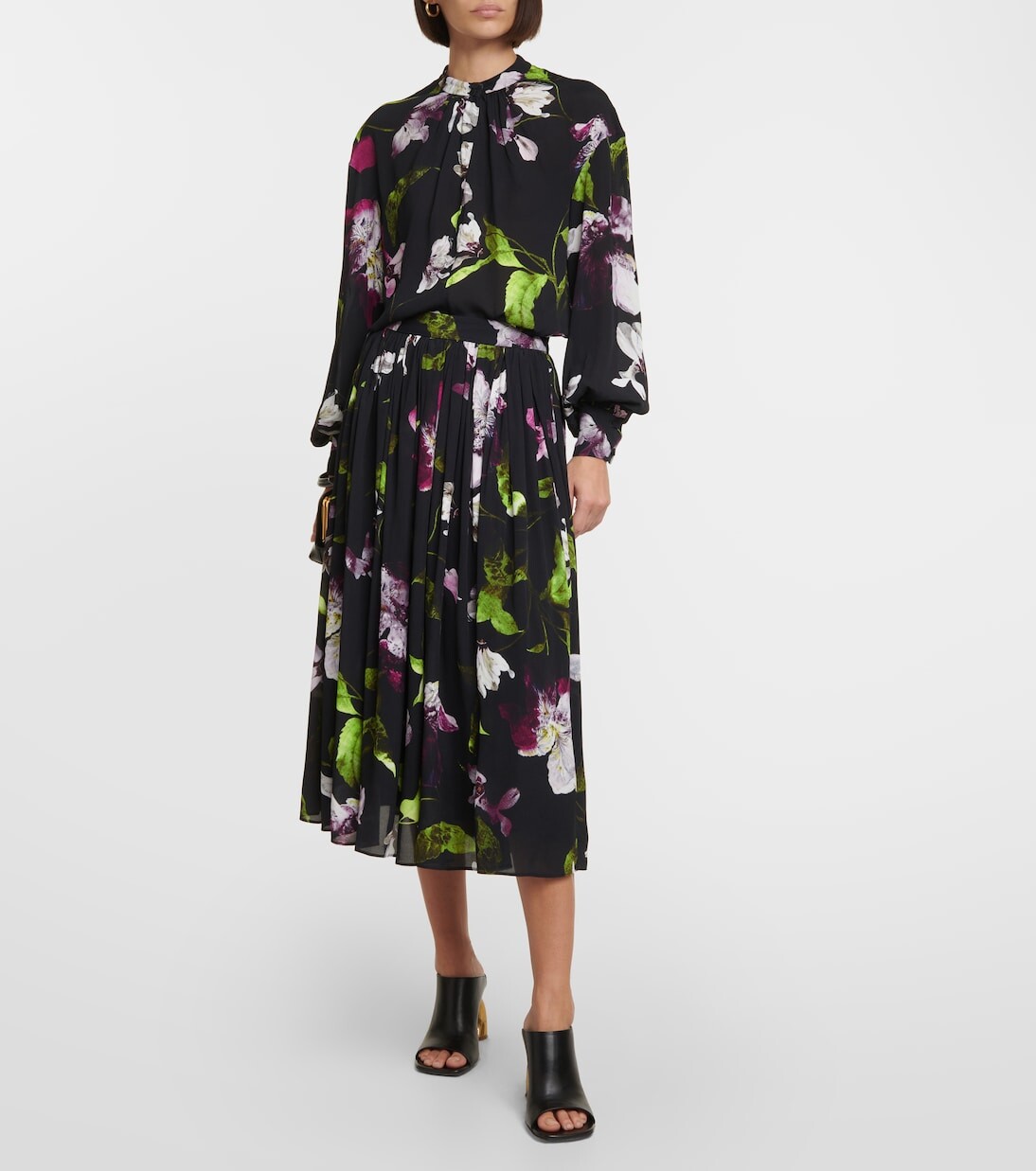 Блуза из крепа с цветочным принтом Erdem, черный 63 823₽