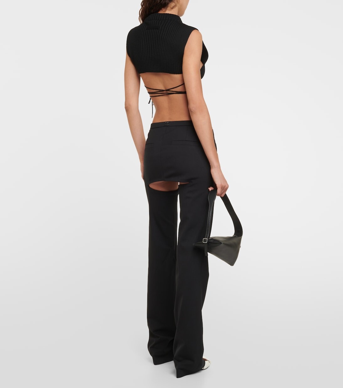 Расклешенные брюки из смесовой шерсти с вырезами Courrèges, черный 80 009₽