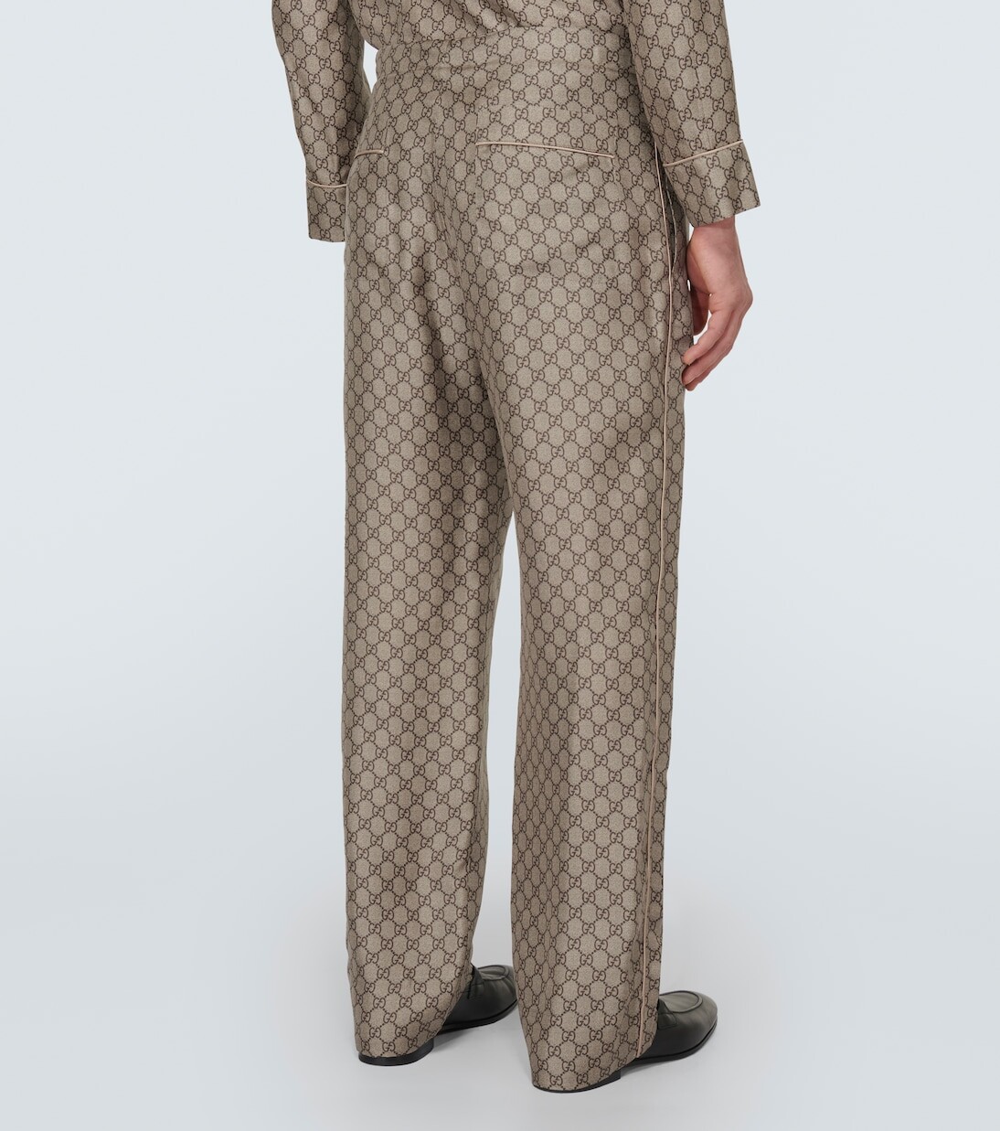 Прямые брюки из шелка с узором gg Gucci, бежевый