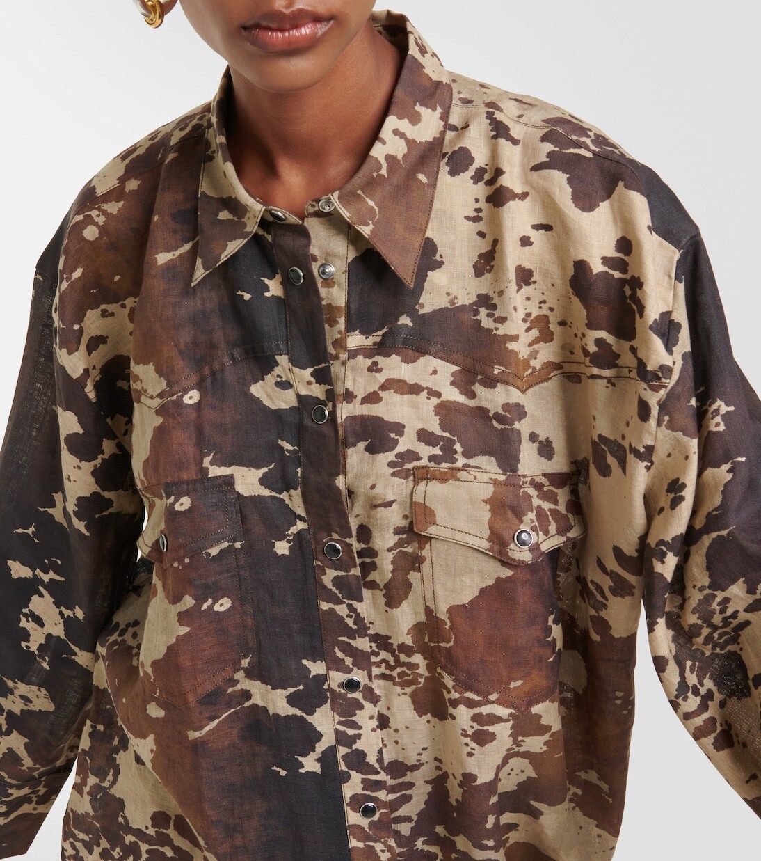 Льняное мини-платье с коровьим принтом Acne Studios, коричневый