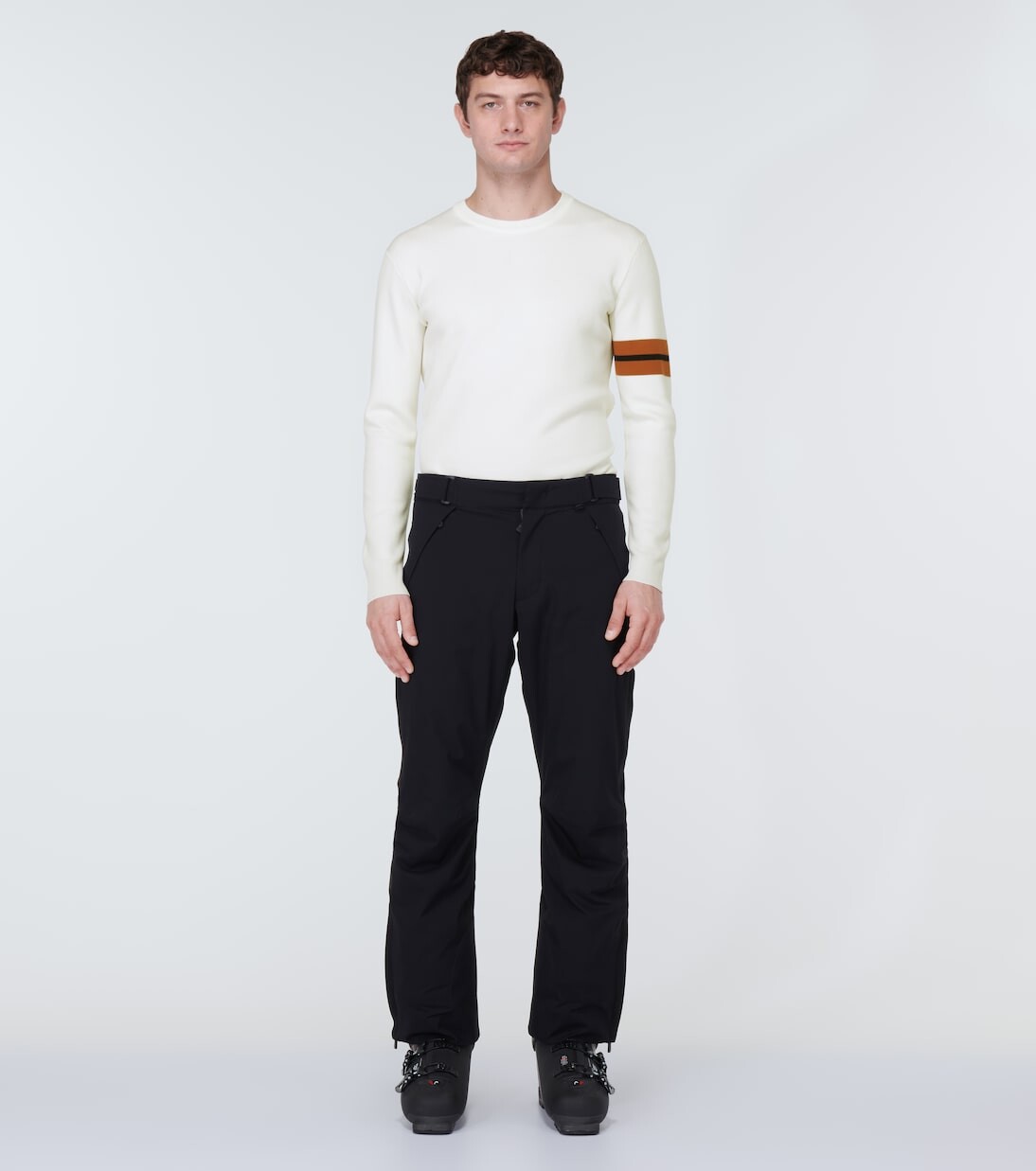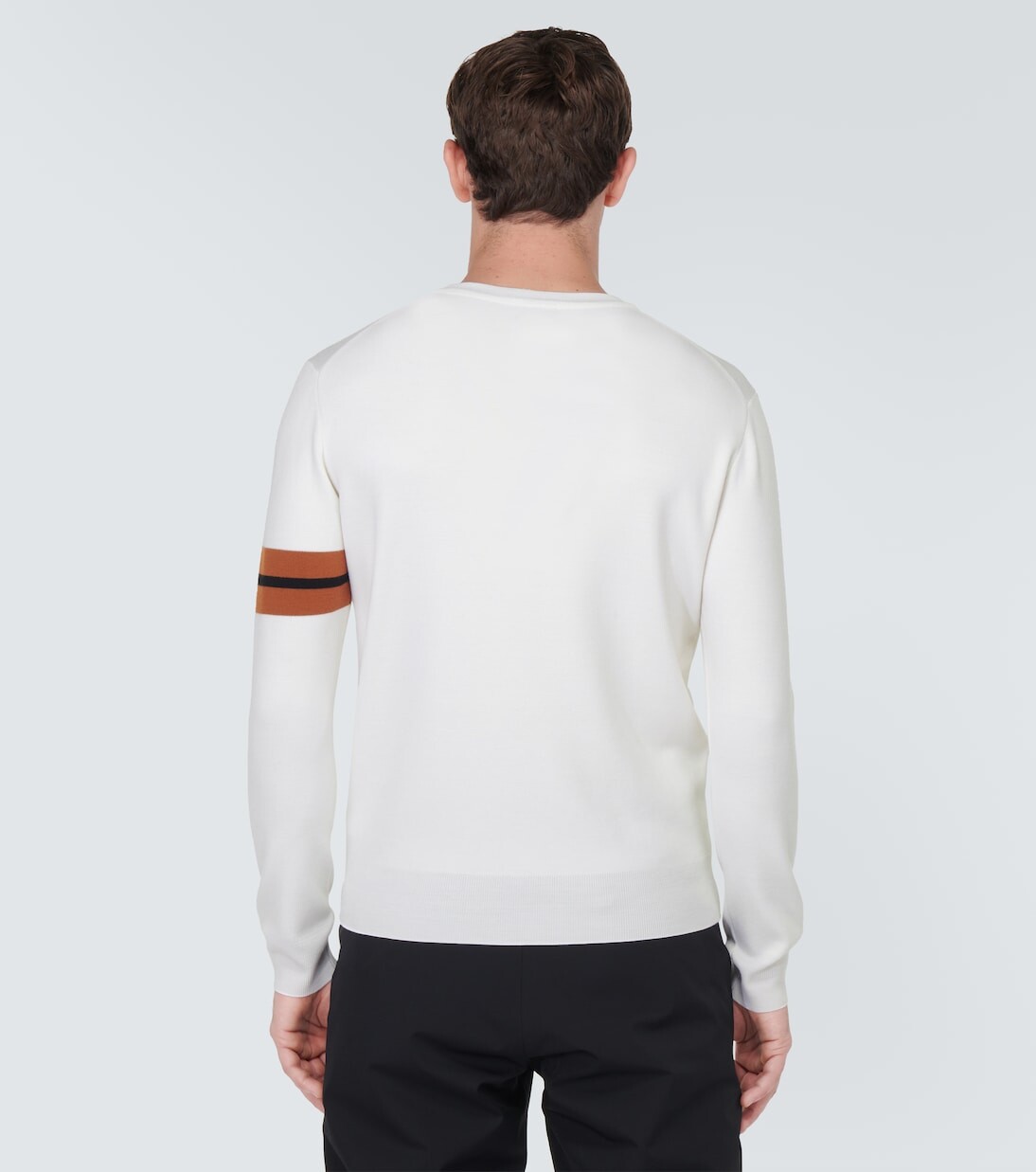 Созданная с целью создания лучших в мире тканей, компания Zegna в настоящее время является ведущим брендом роскошной и инновационной мужской одежды. Белый шерстяной свитер связан в рубчик с коричневыми полосками на одной руке. Материал: 100% шерсть. Рекомендации по уходу: машинная стирка при 30 градусах. Сделано в Италии.