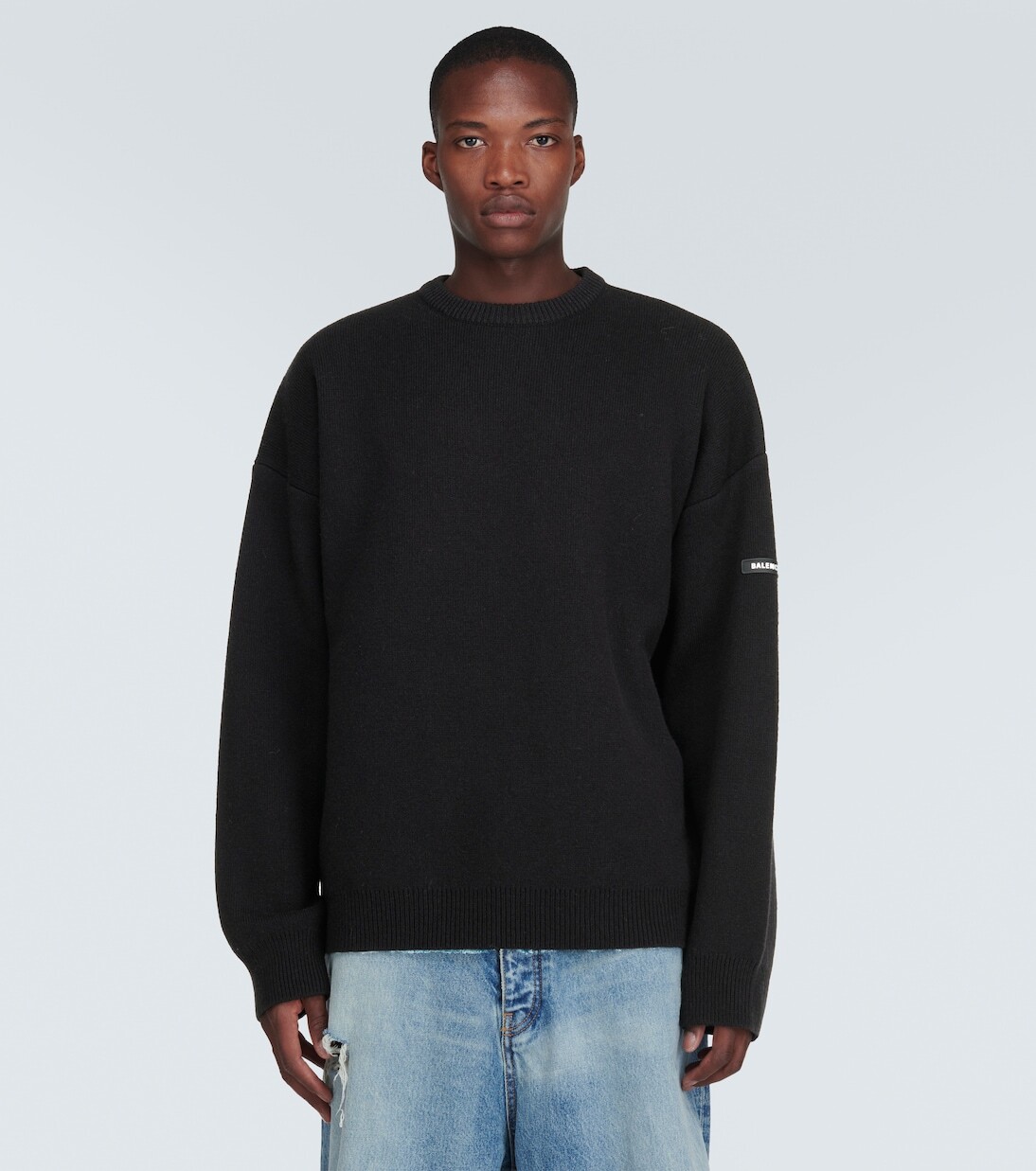 Свитер оверсайз из смесовой шерсти Balenciaga, черный