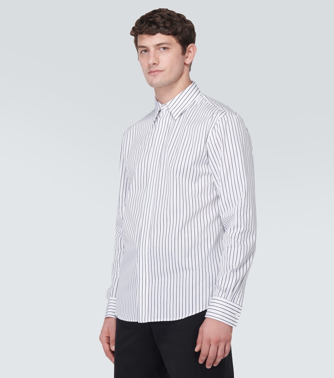 Классическая и изысканная рубашка от Bottega Veneta подойдет для любого официального случая. Оно выполнено из чистого хлопка и имеет классический силуэт с полосатым узором и планкой на потайной пуговице. Материал: 100% хлопок. Рекомендации по уходу: сухая чистка. Сделано в Италии. Содержит нетекстильные части животного происхождения. Застежка: на пуговицах спереди. Манжеты на пуговицах.