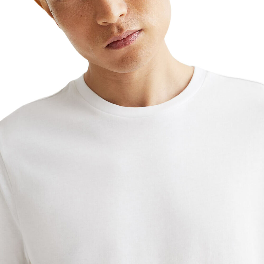 Футболки из мягкого хлопкового трикотажа классической посадки. Круглый вырез горловины с отделкой в рубчик и прямой низ.