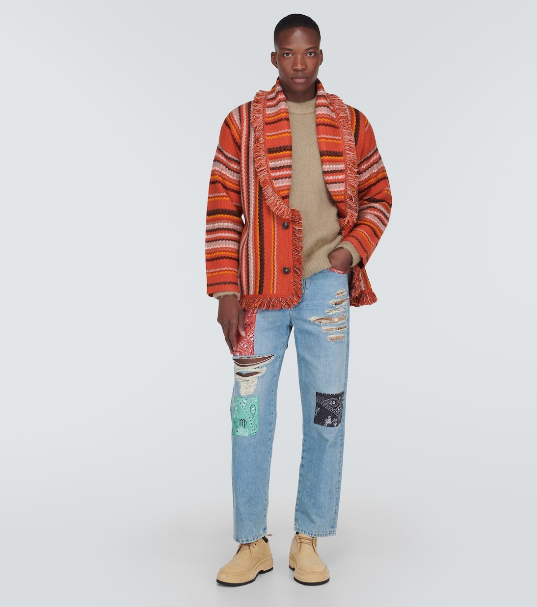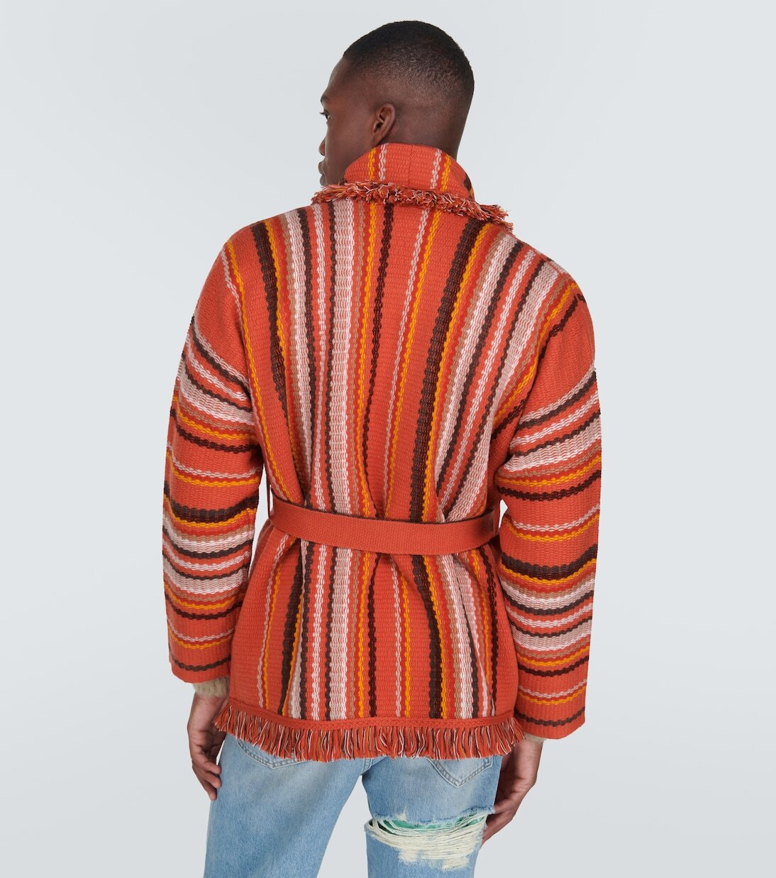 Кардиган Ushuaia Stories Baja демонстрирует приверженность Alanui исключительному мастерству. Яркий дизайн выполнен из натуральной шерсти с жаккардовым полосатым узором и дополнен бахромой и роговыми пуговицами. Материал: 100% натуральная шерсть. Рекомендации по уходу: сухая чистка. Сделано в Италии. Застежка: спереди на пуговицах, пояс на талии. Карманы: прорезные карманы. В комплекте сумка для одежды.