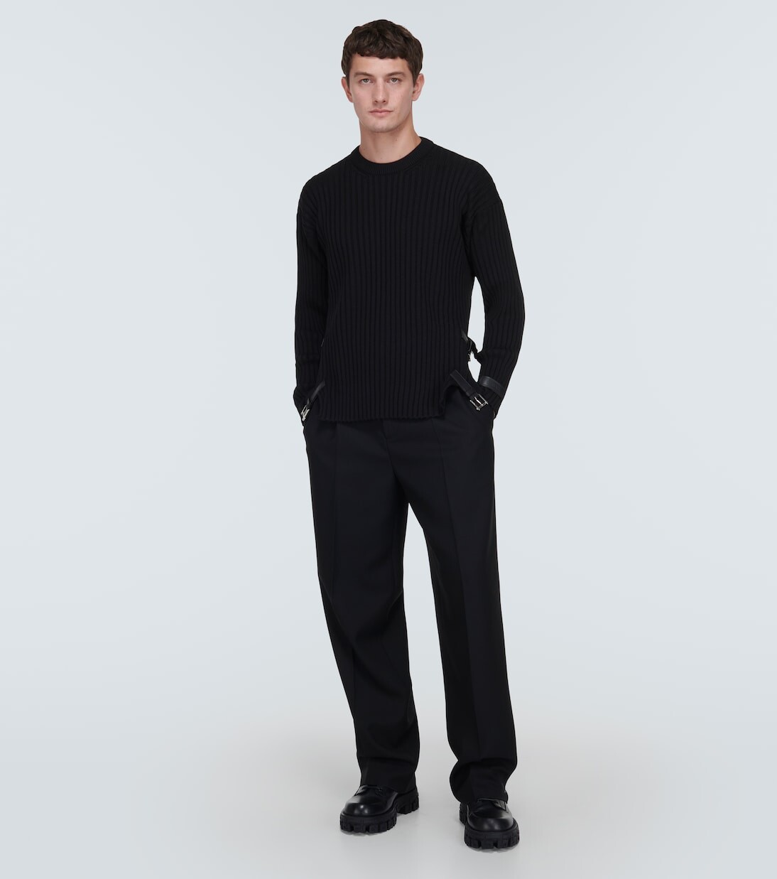 Шерстяной вязаный свитер с кожаной отделкой Versace, черный