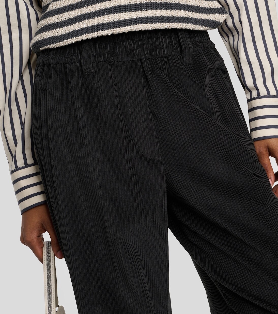 Вельветовые брюки широкого кроя Brunello Cucinelli, черный 146 532₽