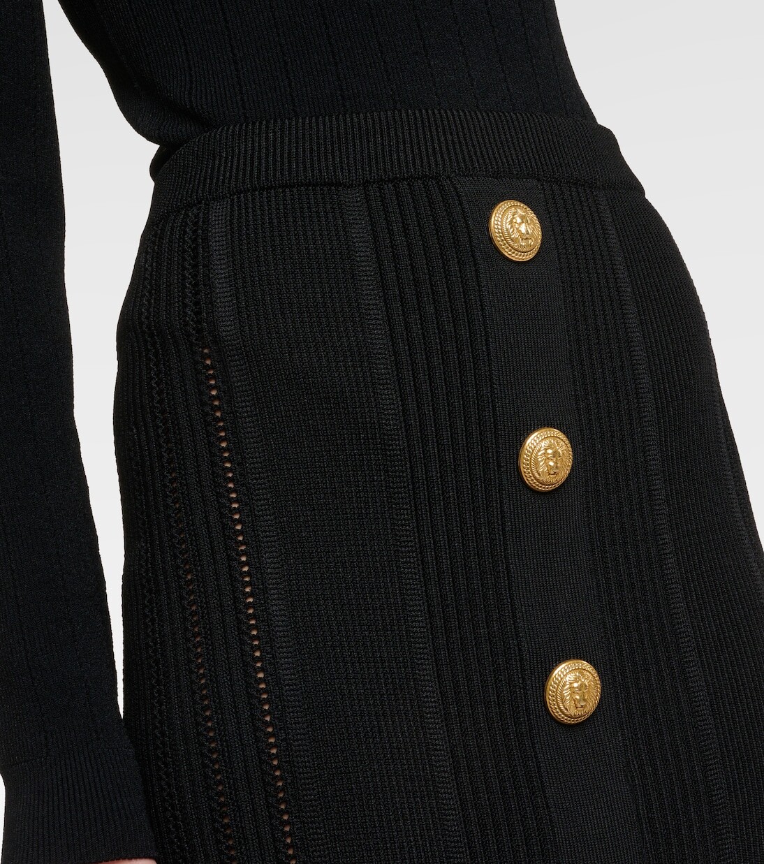 Юбка миди в рубчик с высокой посадкой Balmain, черный