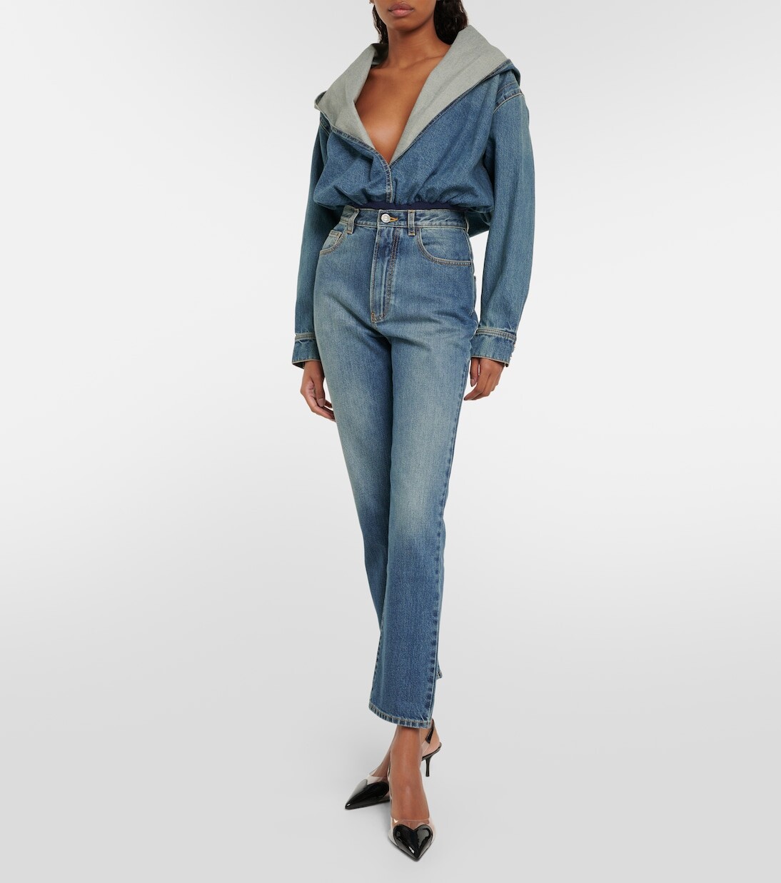 Узкие джинсы с высокой посадкой Alaïa, синий