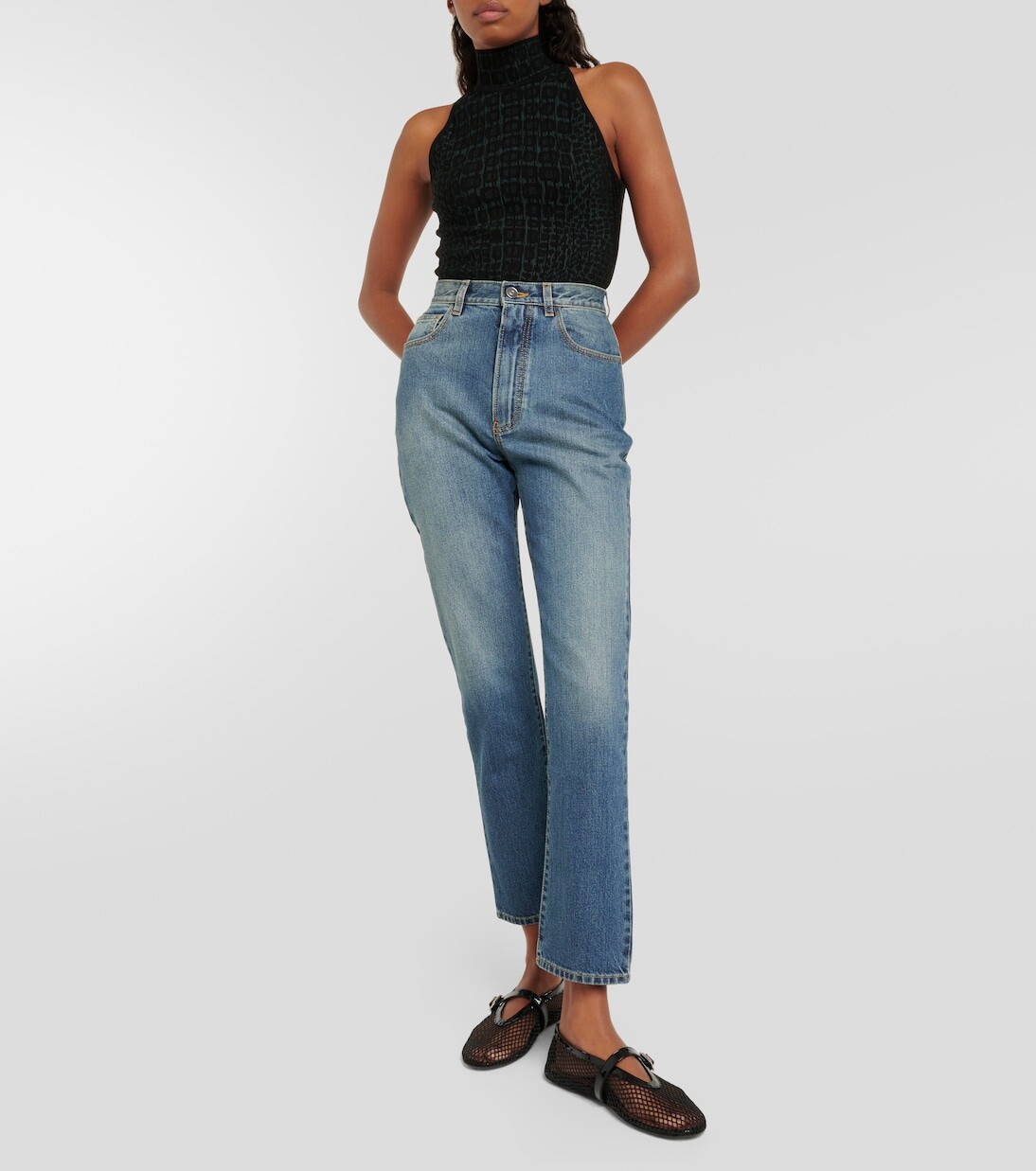 Боди с воротником-халтер и тиснением под крокодила Alaïa, черный 193 790₽
