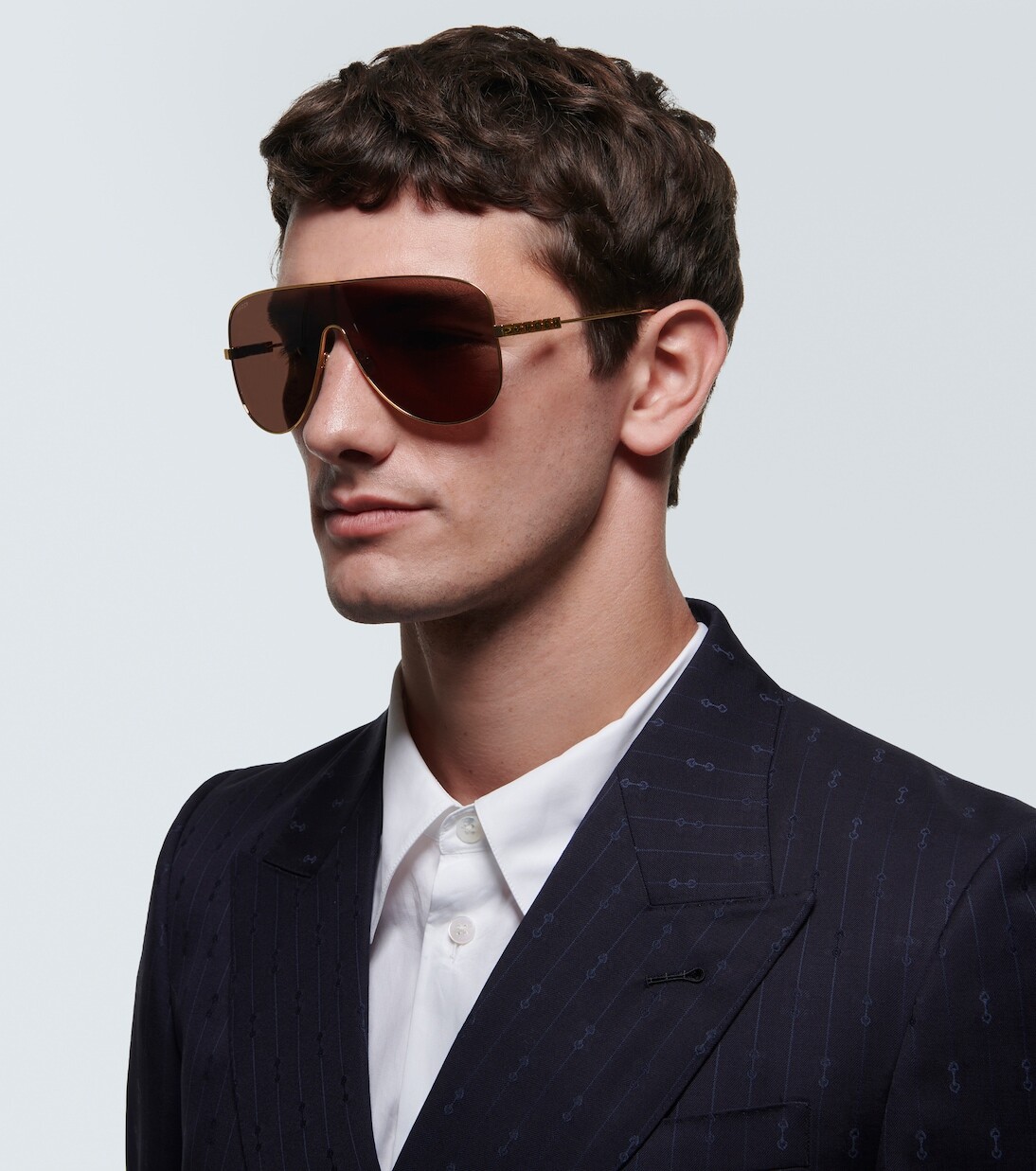 Солнцезащитные очки в оправе-маске Gucci, коричневый
