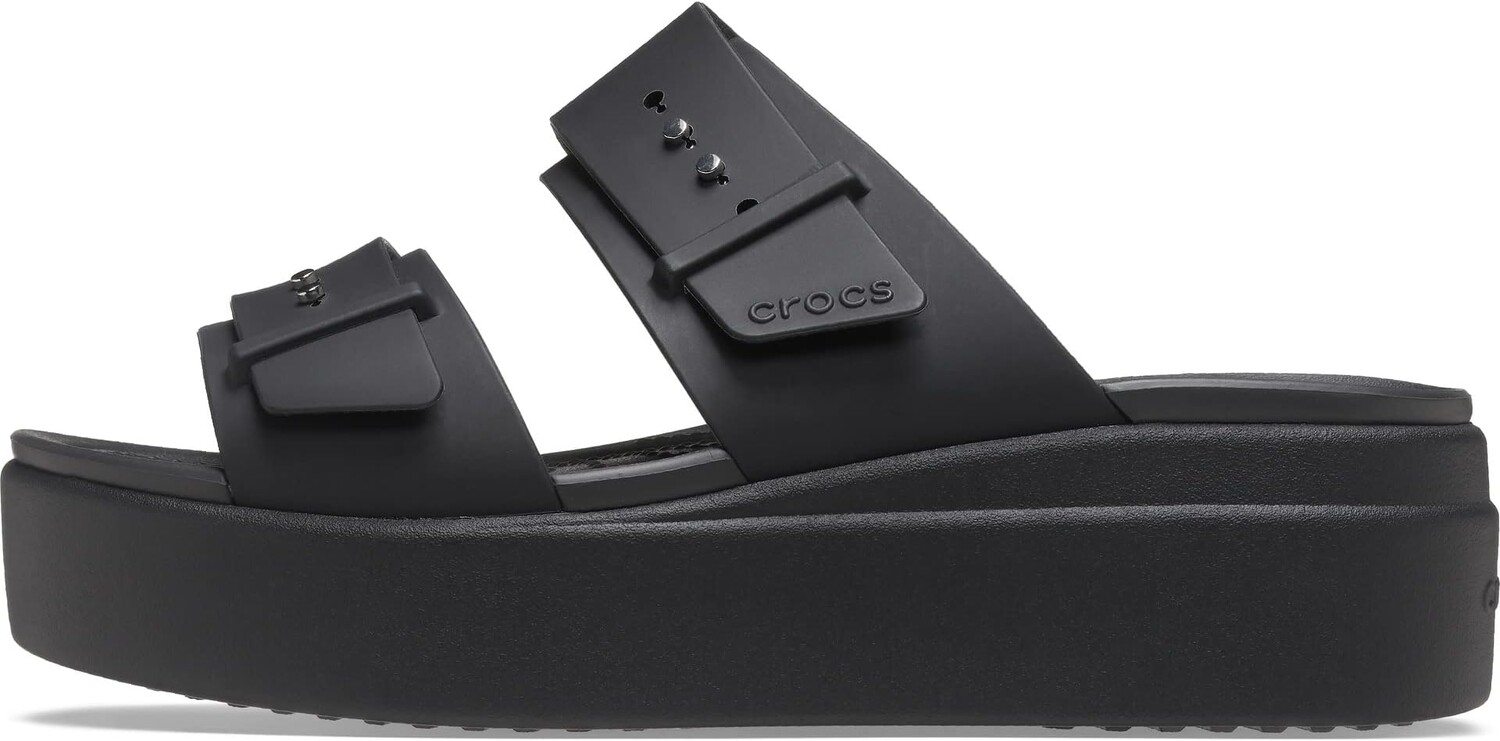 Сандалии на плоской подошве Brooklyn Buckle Low Wedge Crocs, черный
