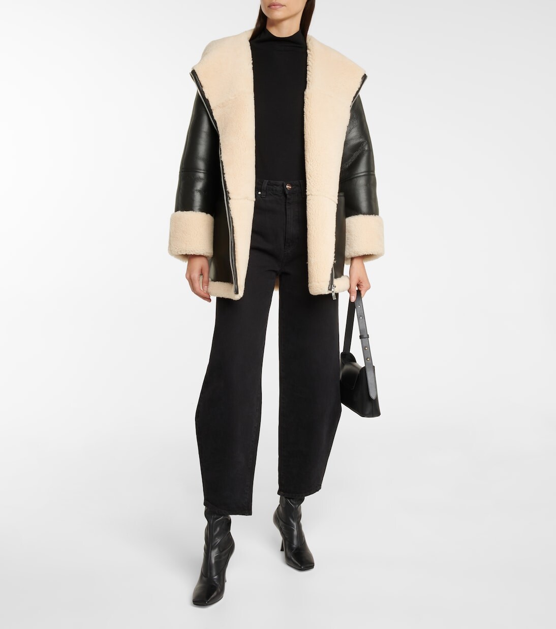 Дополните образ верхней одежды своей мечты этой уютной курткой на подкладке из овчины от Totême. Модель свободного кроя квадратного силуэта выполнена из гладкой кожи ягненка черного цвета и имеет высокий воротник, который, если его расстегнуть, превращается в широкие лацканы. Карманы: прорезные карманы. Рекомендации по уходу: специальная чистка. Застежка: молния спереди. Материал: 100% овчина.