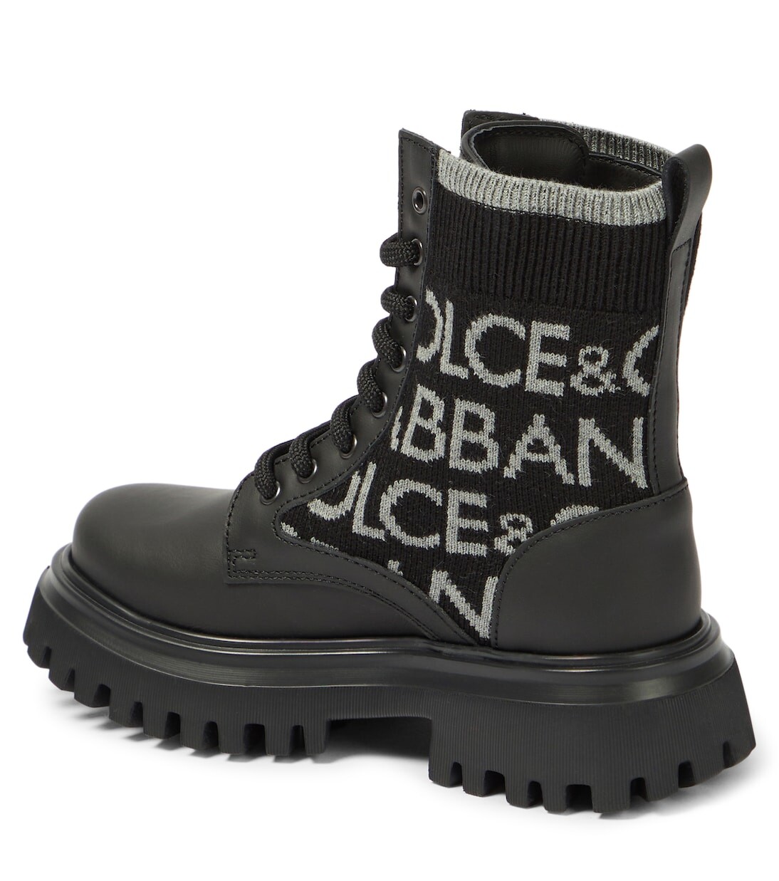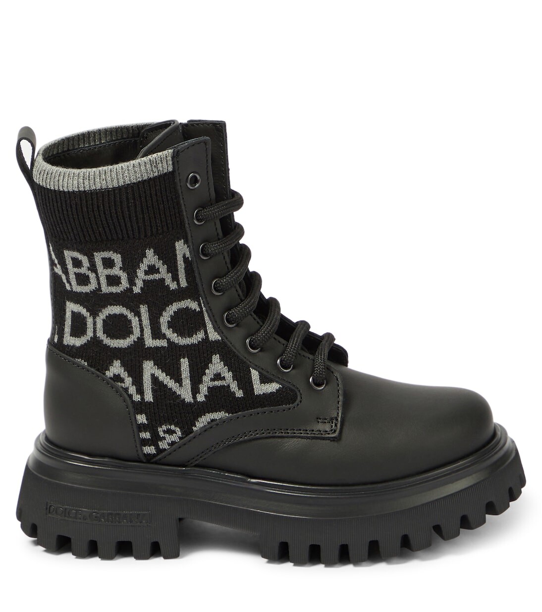 Кожаные армейские ботинки с логотипом Dolce&Gabbana Kids, черный 42 750₽