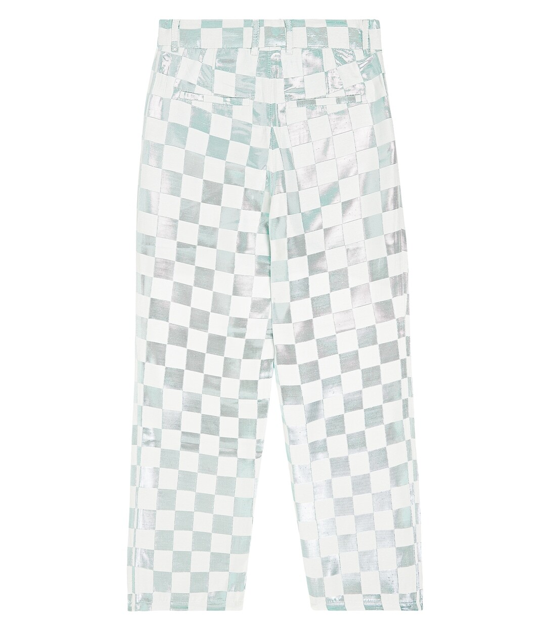 Кэролайн Босманс, мать четверых детей, создает уникальные, модные модели, учитывая практические потребности малышей. Эти брюки изготовлены из ткани с металлическим оттенком и шахматным узором. Материал: 62 % ацетат, 29 % вискоза, 9 % другие волокна. Рекомендации по уходу: сухая чистка. Сделано в Болгарии. Застежка: молния, застежка на крючок. Карманы: боковые прорезные карманы, задние карманы.
