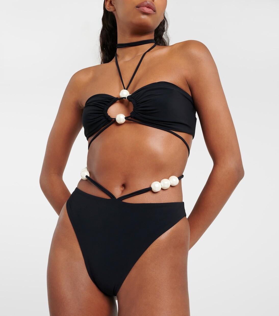 Лиф бикини-бандо, расшитый бисером Magda Butrym, черный