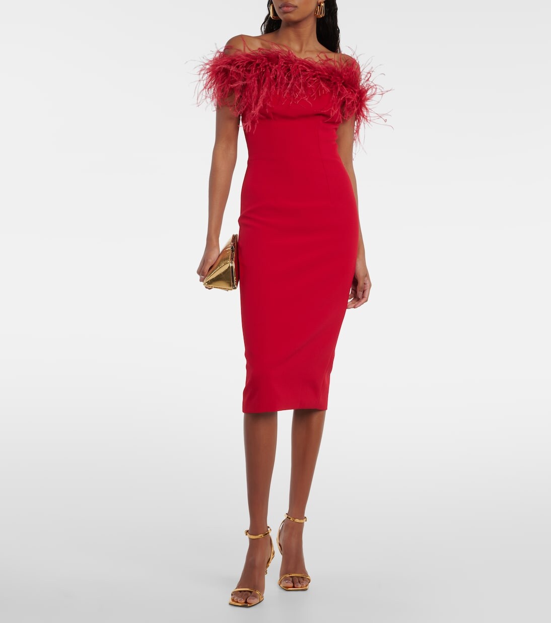 Платье миди starling с отделкой перьями Safiyaa, красный
