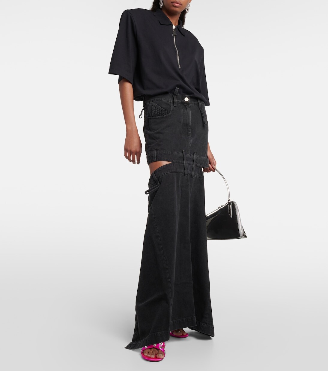 Деконструированная джинсовая юбка макси The Attico, черный 75 061₽