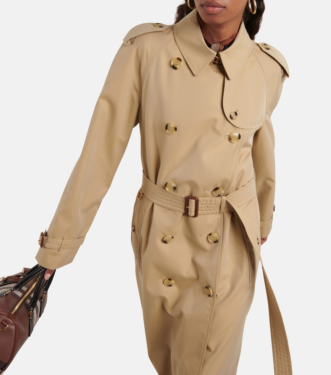 Риккардо Тиши отдает дань наследию Burberry, создав плащ Waterloo – новый рифф архетипического стиля дома. Эта модель «медового» бежевого цвета, изготовленная на родине бренда в Великобритании из водоотталкивающего хлопкового габардина, имеет удлиненный силуэт с поясом, подчеркнутый фирменными деталями в стиле милитари и кожаной отделкой. Подкладка: 100% хлопок, полностью на подкладке. Сделано в Великобритании. Рекомендации по уходу: сухая чистка. Эполеты. Материал: 100% хлопок. Отделка: телячья кожа. Длинное вентиляционное отверстие. Вкладка манжеты. Карманы: карманы на пуговицах. Застежка: застежка на крючки, двубортная застежка спереди на пуговицы. Подкладка рукавов: 100% вискоза. Съемный ремень, шлевки.