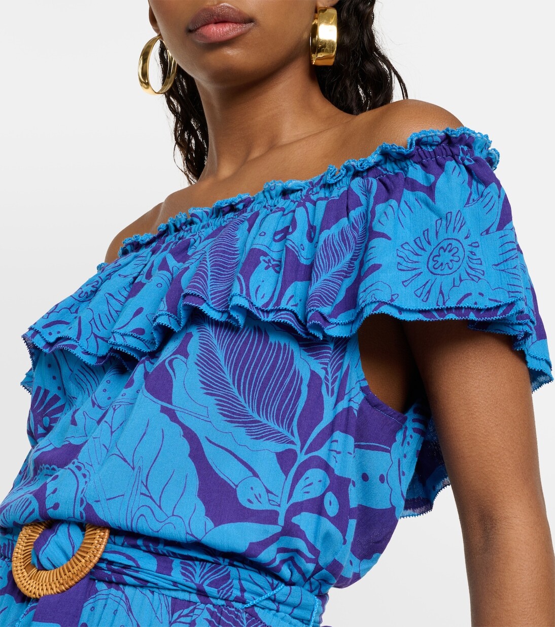 Мини-платье bella с открытыми плечами и принтом Poupette St Barth, синий 32 049₽