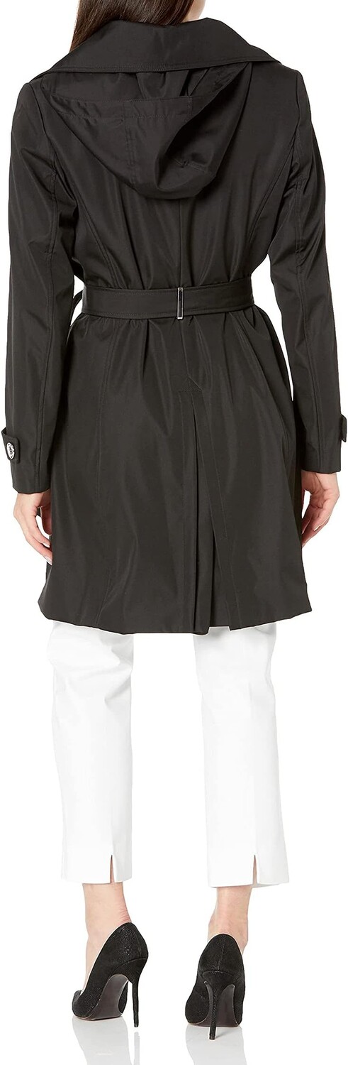 Женская однобортная дождевик с поясом и съемным капюшоном Calvin Klein, черный