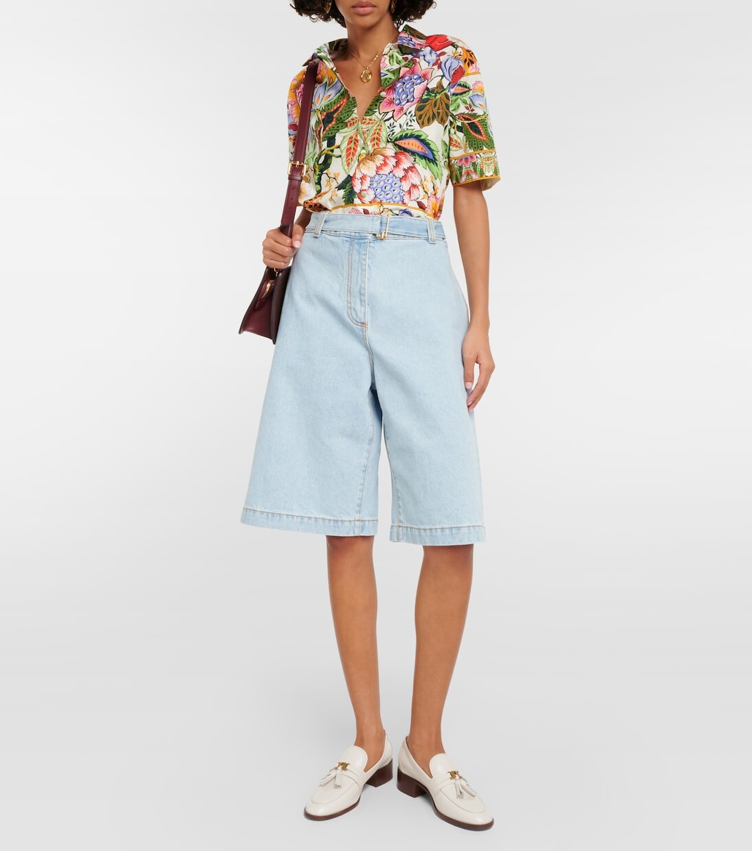 Хлопковая рубашка с цветочным принтом Etro, мультиколор