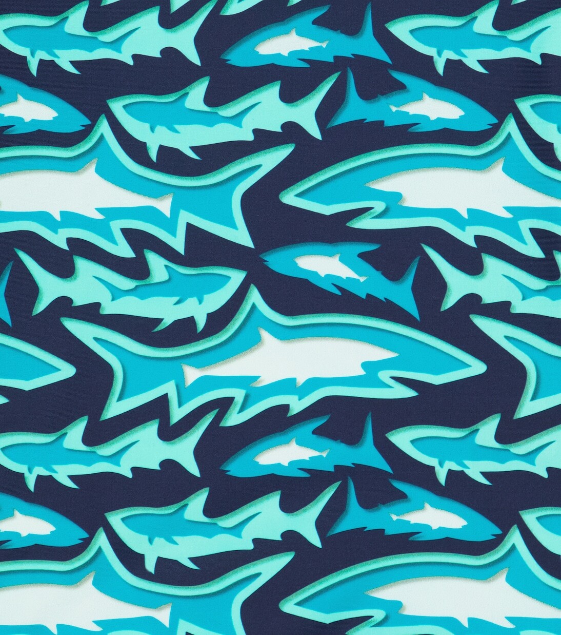 Ваш малыш захочет носить рашгард Jim от Vilebrequin Kids как в воде, так и на суше. Модель изготовлена из мягкой эластичной ткани для плавания, устойчивой к ультрафиолетовому излучению, с принтом в виде ярких акул и обеспечивает оптимальный комфорт. Материал: 78 % полиамид, 22 % эластан. Рекомендации по уходу: машинная стирка при 30 градусах. Сделано в Тунисе. Дизайнерское название цвета: Bleu Marine Номер артикула: P00728478.