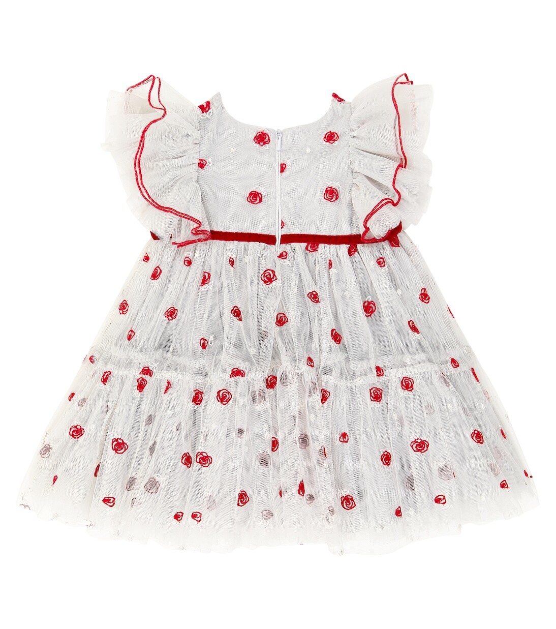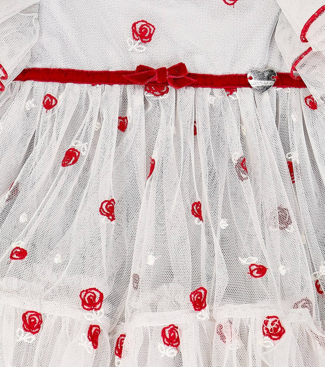 Детское тюлевое платье с вышивкой Monnalisa, белый
