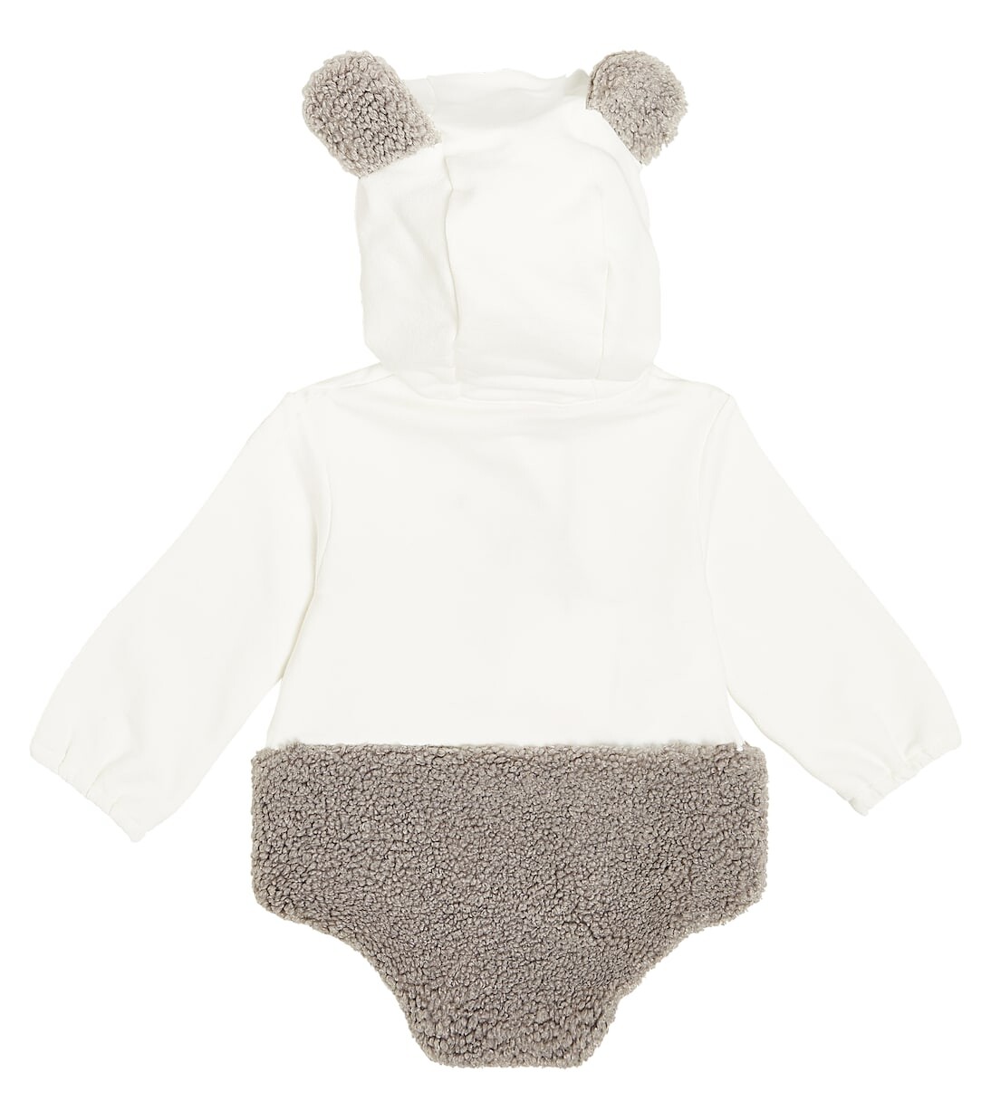Боди от Il Gufo выполнено из хлопкового джерси с отделкой из искусственной овчины. Модель имеет закругленный силуэт с кнопками и капюшон с мордочкой медведя. Материал: 94 % хлопок, 6 % эластан. Рекомендации по уходу: машинная стирка при 30 градусах. Сделано в Болгарии. Название цвета дизайнера: Молочно-Никель-серый. Подкладка: 100 % хлопок. Детали: 100 % полиэстер. Застежка на капюшоне: кнопки. Номер артикула: P00850253.