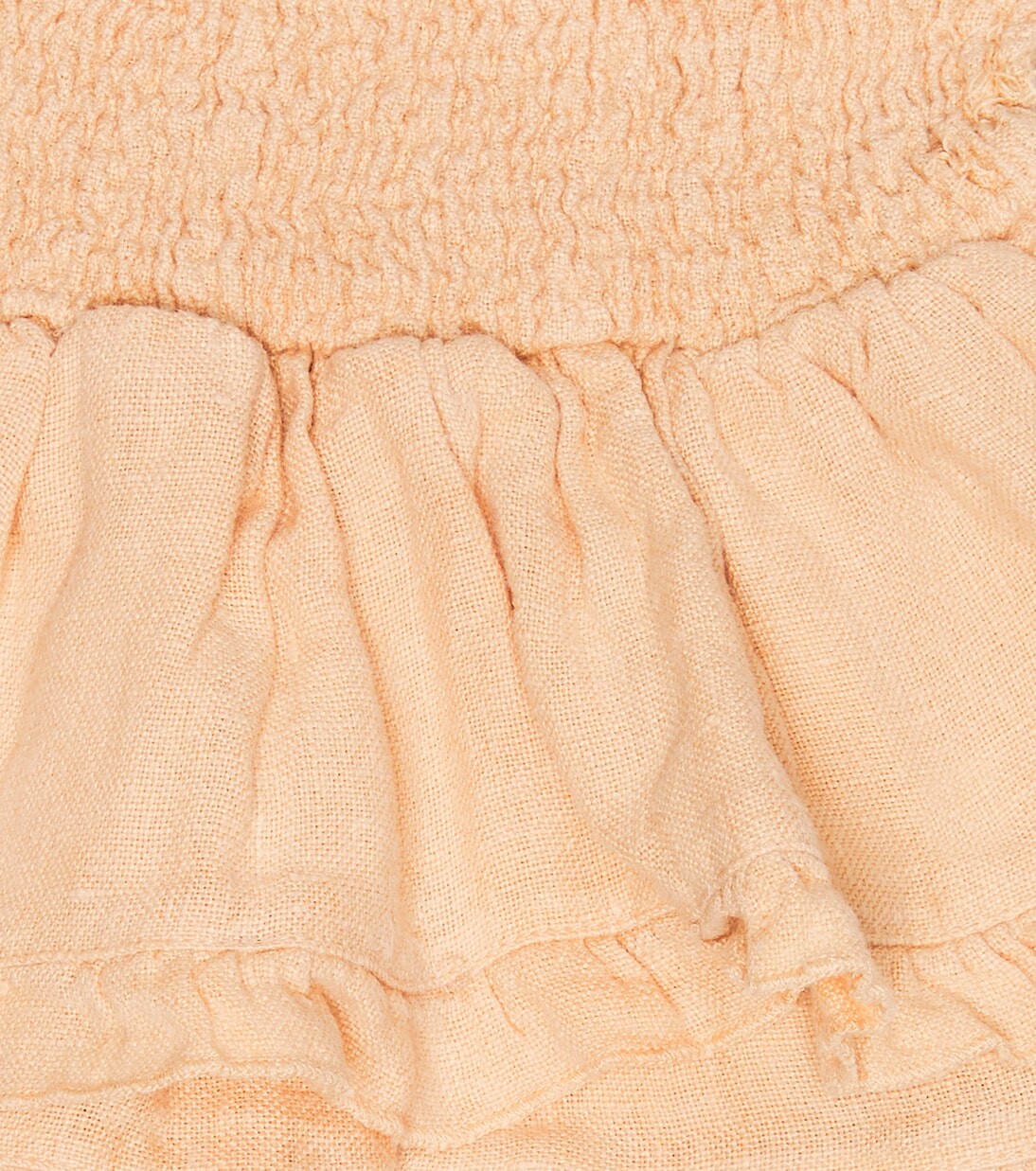 Все модели Donsje изготавливаются вручную с использованием тщательно отобранных материалов, что обеспечивает высочайшее качество и долговечность. Шаровары Vaibi изготовлены из льна и украшены очаровательными рюшами и эластичным поясом. Рекомендации по уходу: машинная стирка при 30 градусах. Материал: 100 % лен. Производство Португалии. Номер артикула: P00796178.