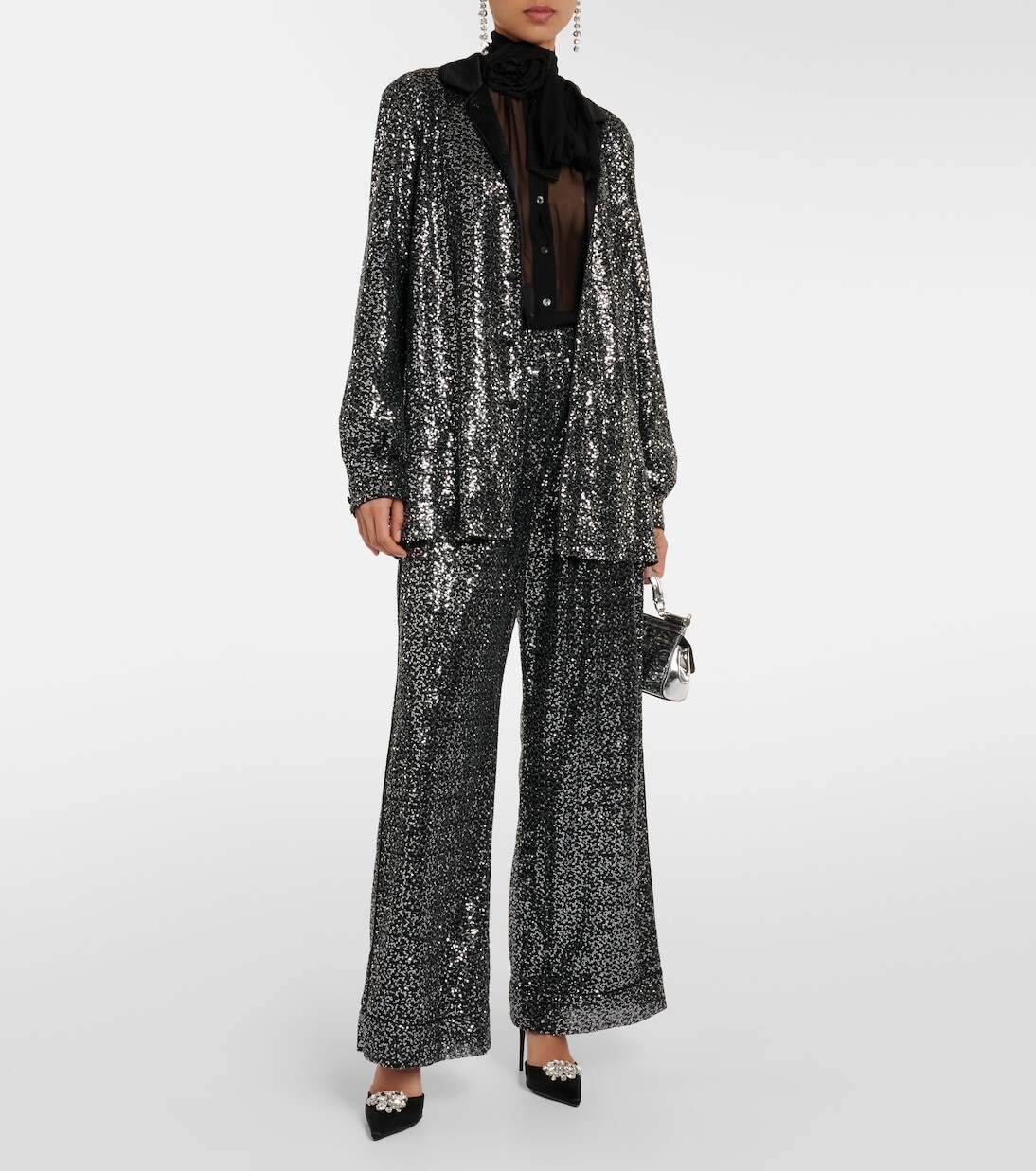 Атласные мюли с кристаллами Dolce&Gabbana, черный 116 835₽