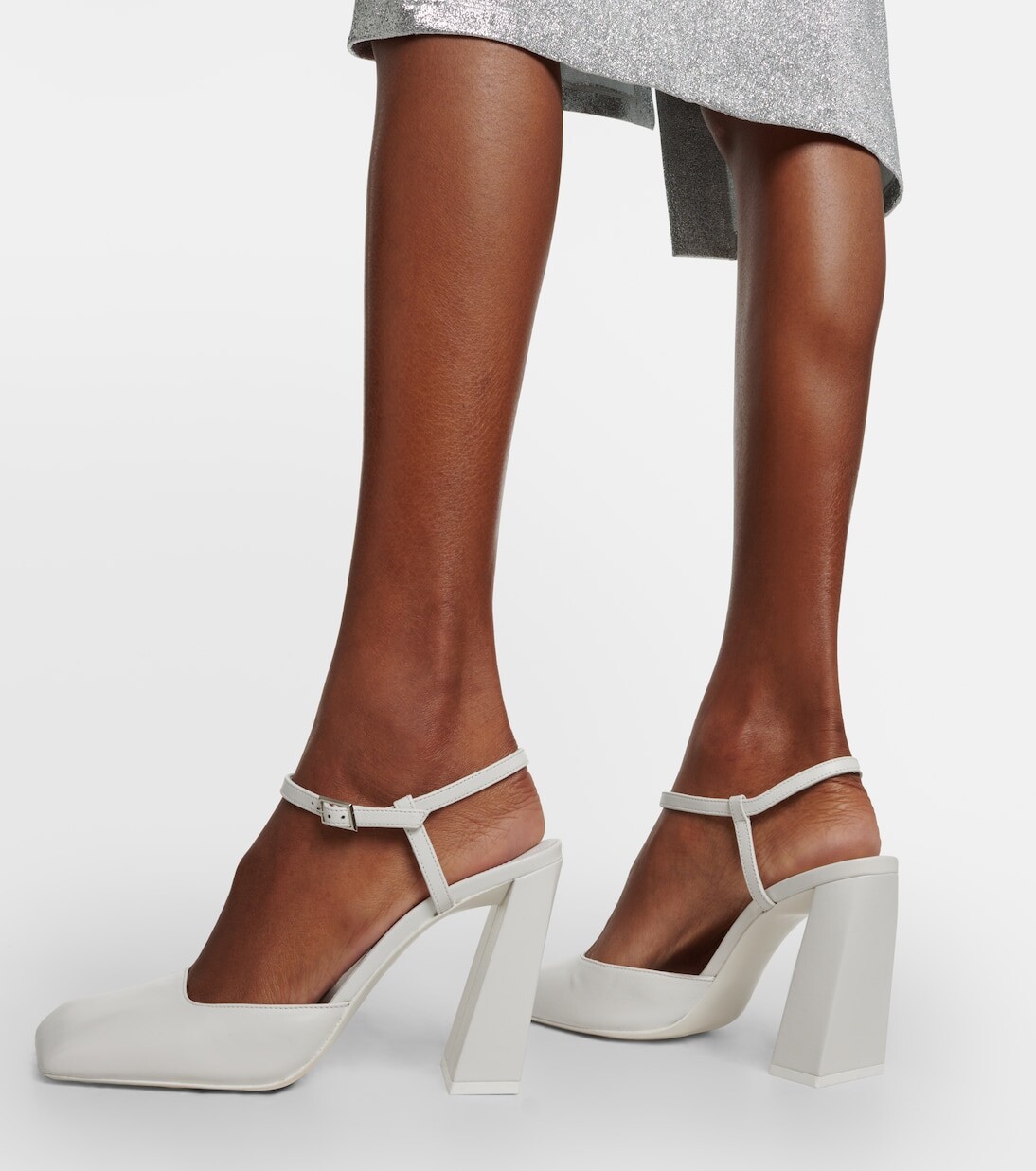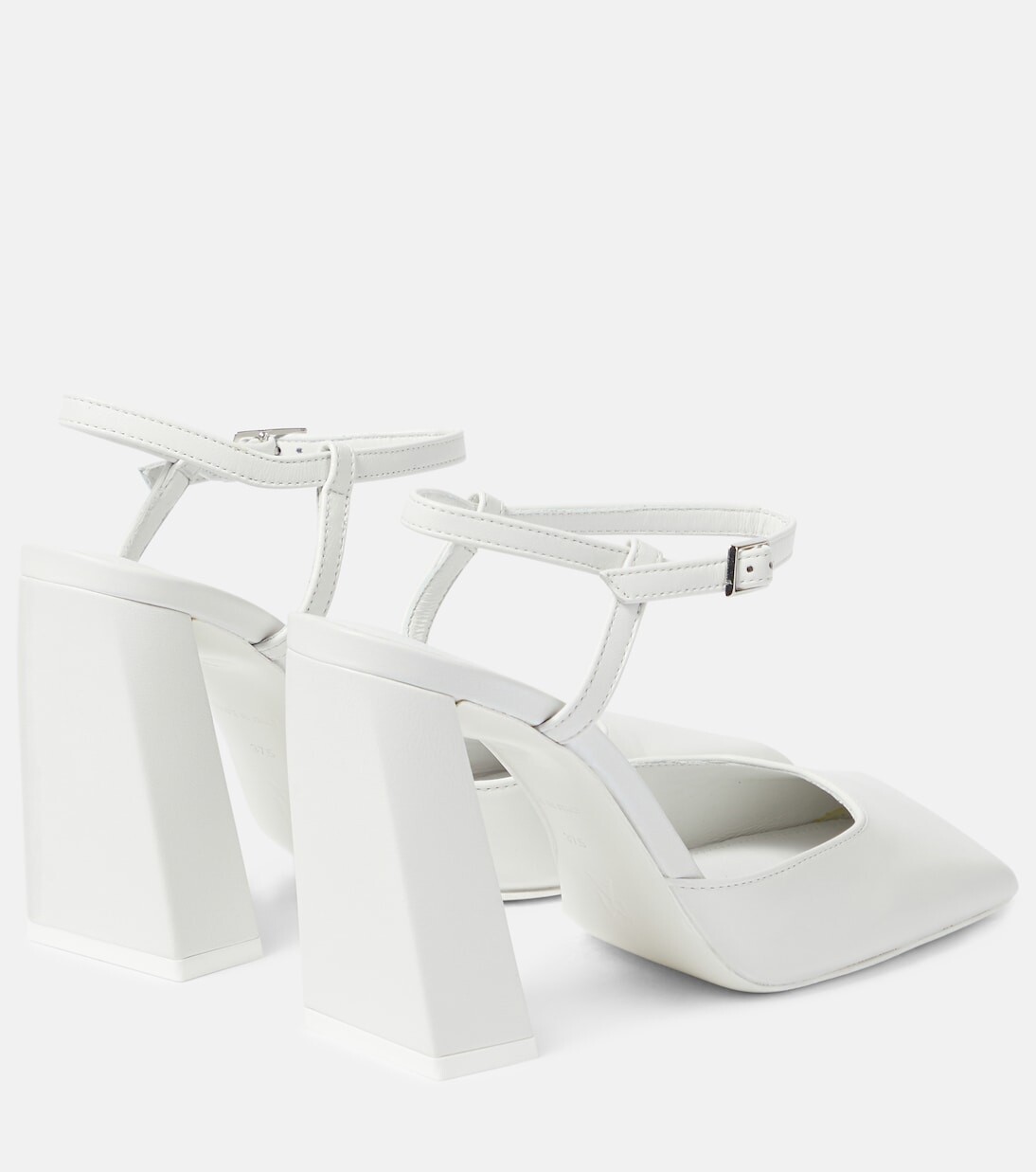 Верх: кожа ягненка. Подкладка: кожа. Подошва: кожаная стелька и подошва. Форма носка: квадратный носок. Сделано в Италии. В комплекте: коробка для обуви, мешок для пыли. Название дизайнерского цвета: белый. Застежка: ремешок на щиколотке с пряжкой. Номер артикула: P00873652