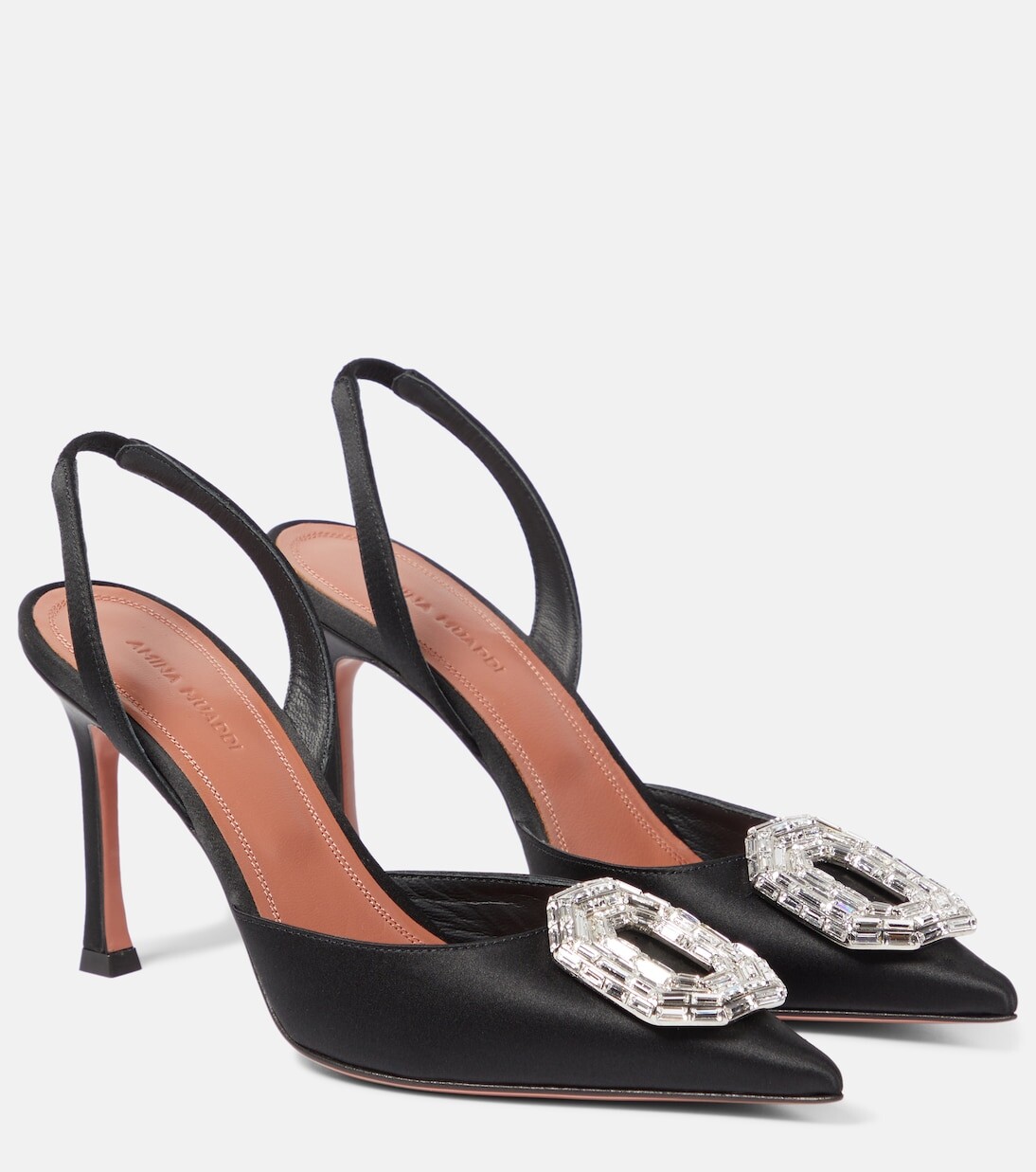 Атласные туфли camelia 90 с пяткой на пятке Amina Muaddi, черный