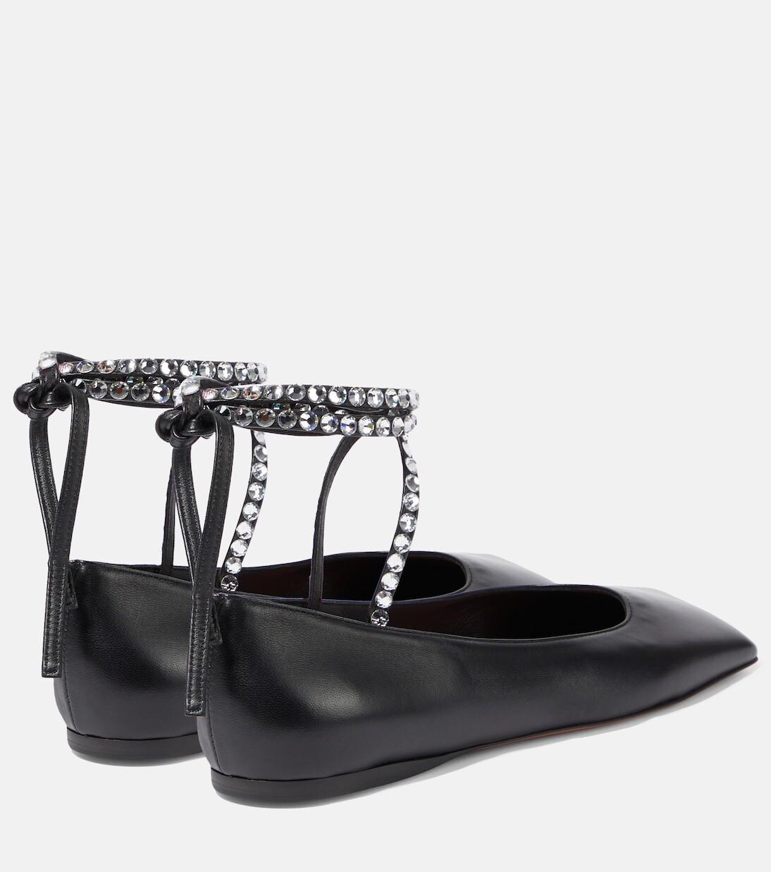 Кожаные балетки ane с декором Amina Muaddi, черный
