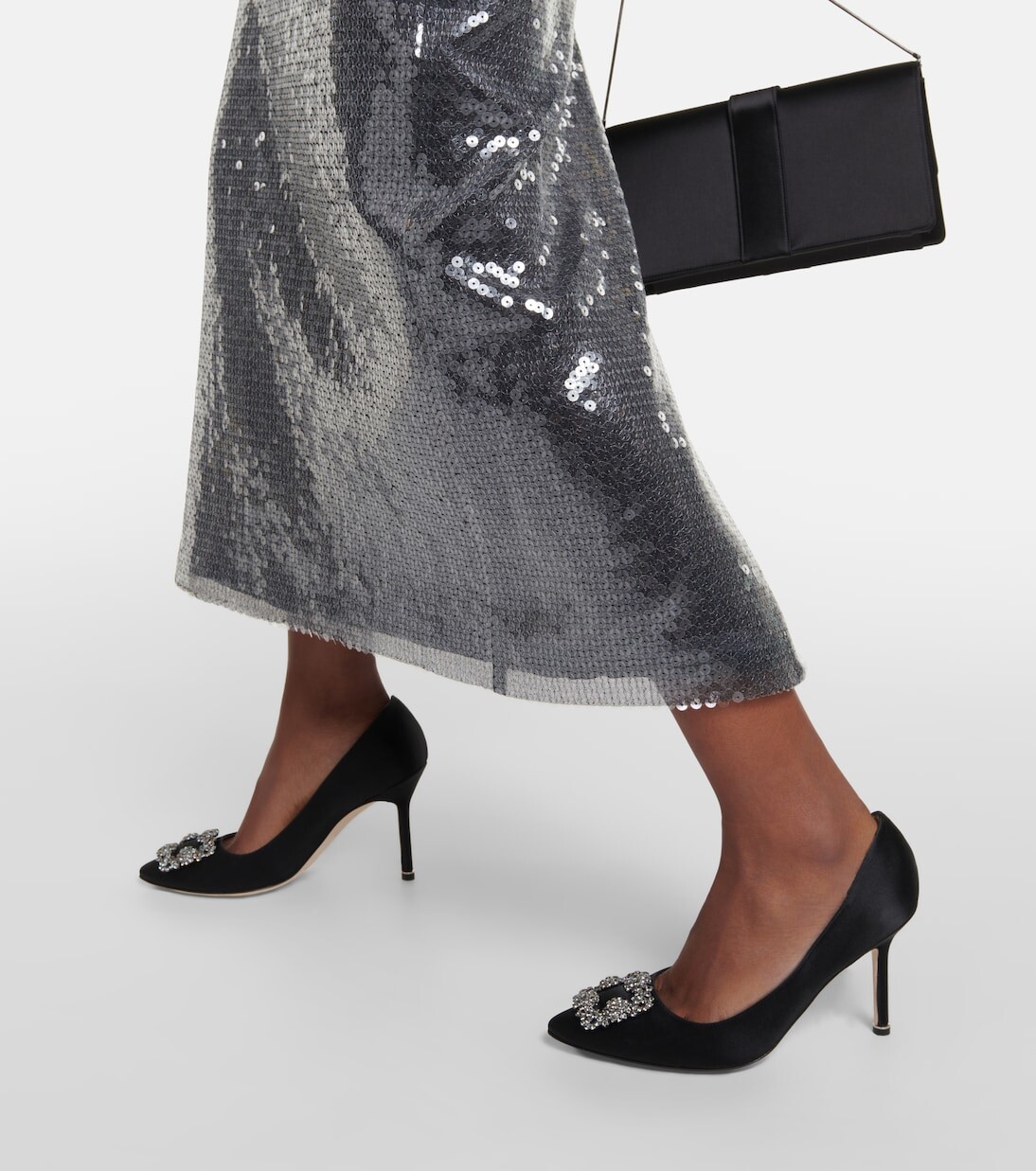 Атласные туфли hangisi 90 с декором Manolo Blahnik, черный