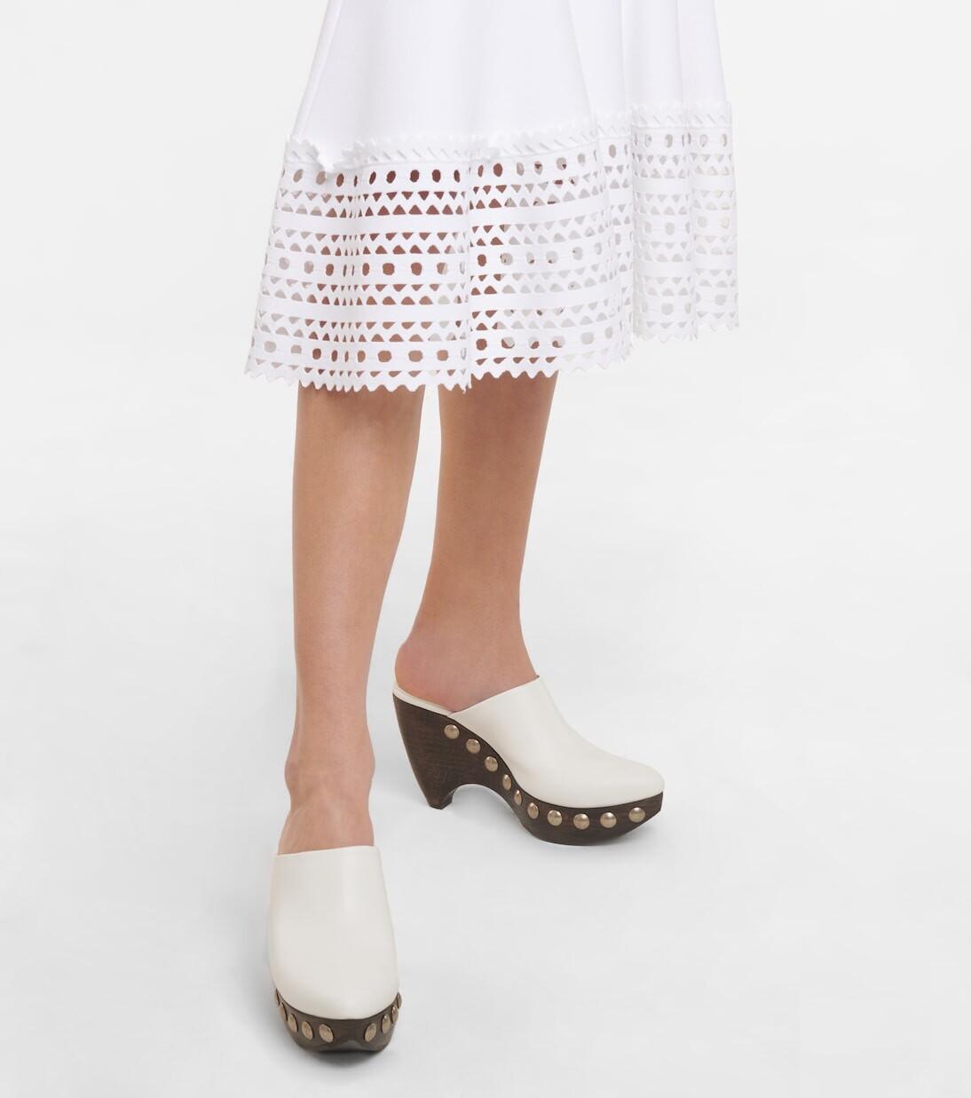 Поэкспериментируйте с одержимостью моды сабо с помощью этой версии от Alaïa. Они выполнены из кожи, имеют классические шипы по бокам и высокий блочный каблук. Подкладка: кожа. Подошва: кожаная стелька, резиновая подошва. Верх: телячья кожа. Форма носка: миндалевидный. В комплекте коробка. Название дизайнерского цвета: Blanc Casse. Сделано в Италии. Номер артикула: P00635013.