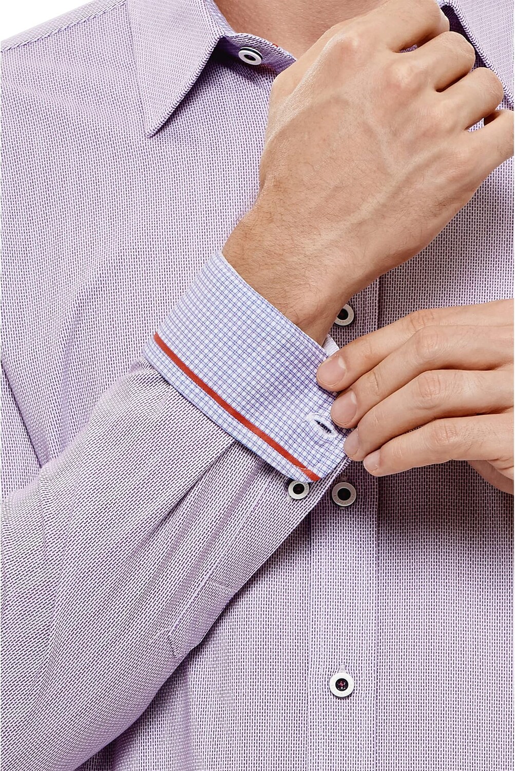 Контрастные детали на воротниках, манжетах и ​​пуговицах.