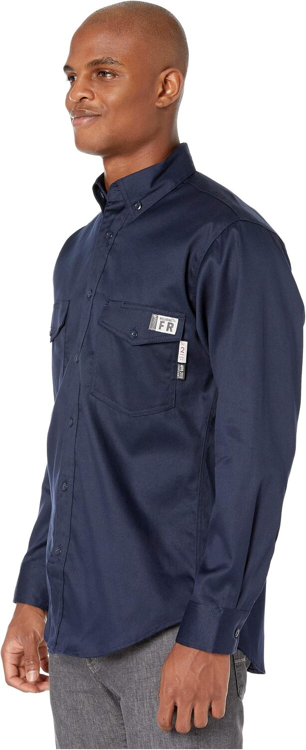 Рабочая рубашка на пуговицах изготовлена ​​из огнестойкого твила и высокопрочного огнестойкого арамида плотностью 5,8 унции. прочная нить.