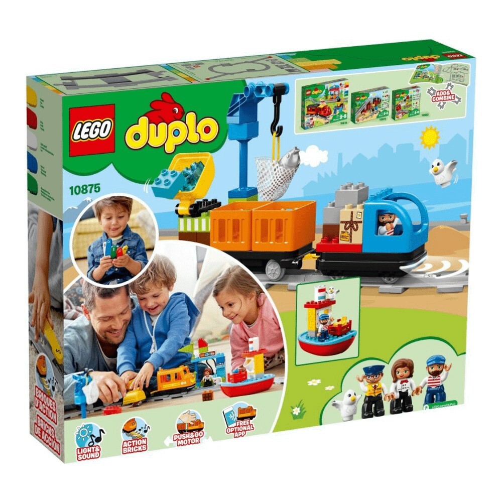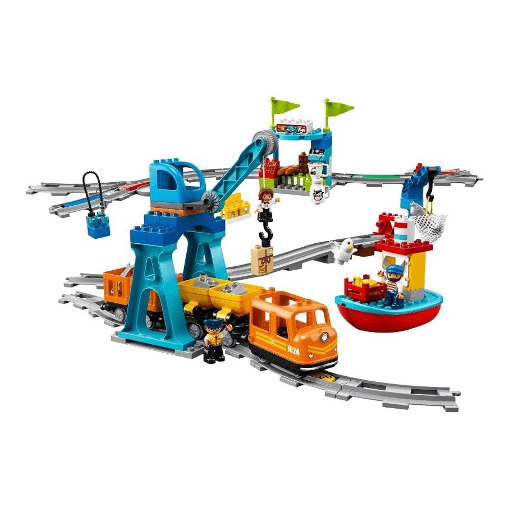 В этом наборе LEGO DUPLO есть гавань, лодка, кафе, погрузочная станция, 2 крана, 3 фигурки DUPLO, фигурка животного и множество деталей трека - дошкольники смогут наслаждаться классической и веселой игрой в поезда. Скачайте дополнительное приложение, чтобы открыть еще больше возможностей для игры, включая функцию дистанционного управления и веселые задания, которые можно выполнить вместе с малышом!