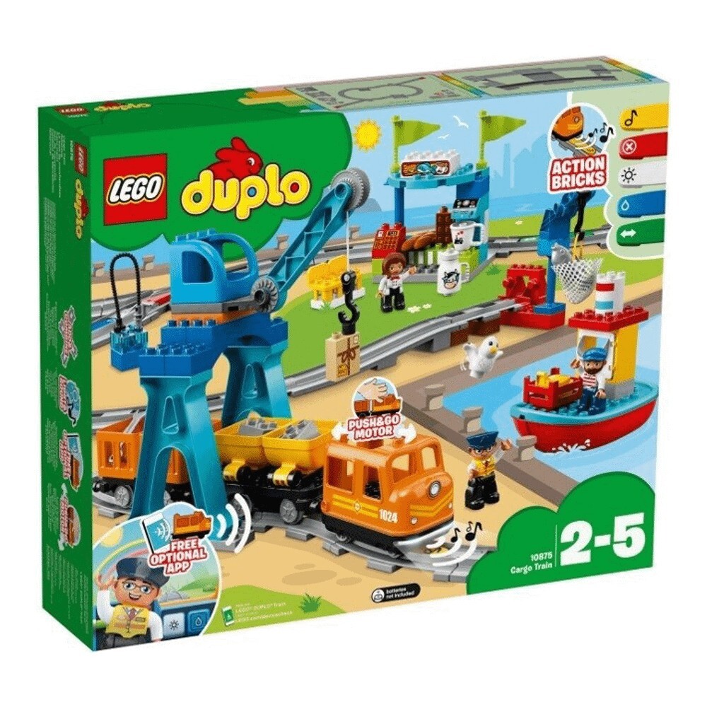 Грузовой поезд LEGO® DUPLO® теперь еще легче для вашего малыша, чтобы управлять им и взаимодействовать с ним различными способами. Маленькие дети могут стать машинистом поезда с помощью мотора Push & Go - легкий толчок вперед или назад отправляет поезд в путь, а крепкая фиксация или подъем с рельсов заставит его остановиться. Помогите им разместить 5 цветных кирпичиков вдоль пути, чтобы подать звуковой сигнал, включить и выключить свет, сделать паузу и заправиться, изменить направление и остановить поезд в любом месте.