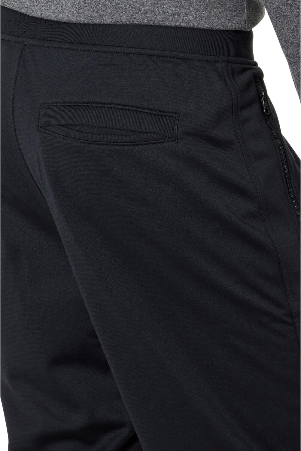 Карманы для рук на молнии и задний правый прорезной карман.