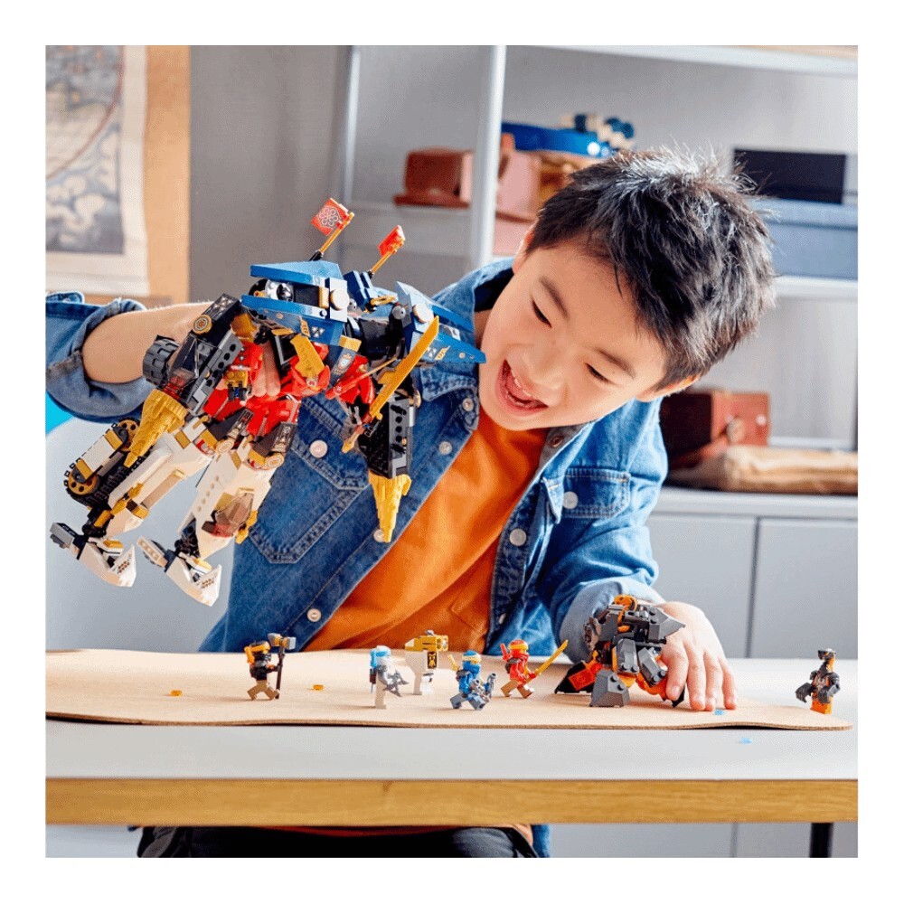 Дети в возрасте от 9 лет будут в восторге от возможности часами играть в захватывающие приключения ниндзя с набором «Ультра-комбо-робот ниндзя» (71765). В этом игровом наборе «4 в 1» вас ждёт игрушечный робот — совершенная боевая машина, собранная из робота, автомобиля, танка и реактивного самолёта, с которыми можно играть по отдельности.