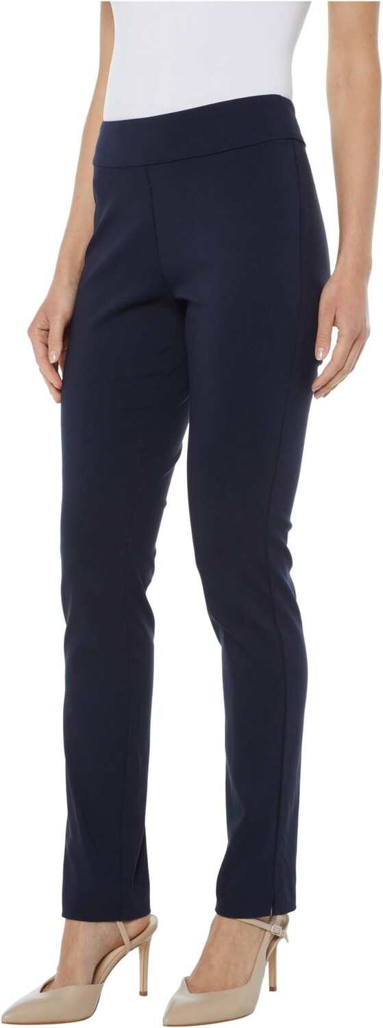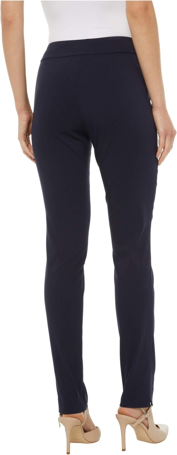 Брюки без застежки имеют высокую посадку и узкую посадку от бедра до штанин.