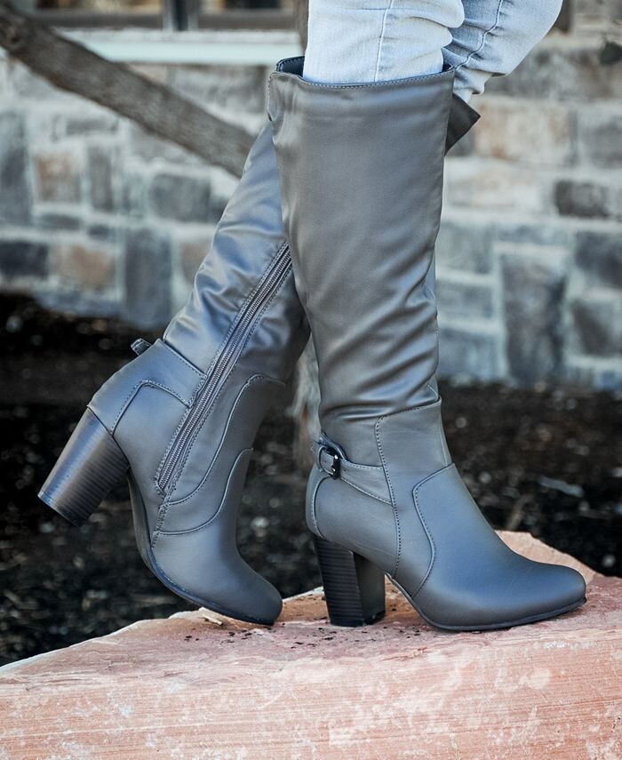 Привлеките внимание в этом сезоне ботинками на каблуке от Journee Collection. Эти стильные ботинки имеют высокие голенища из искусственной кожи (полиуретана), доходящие до середины икры.